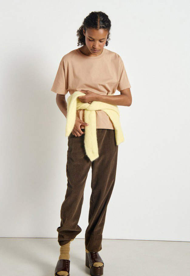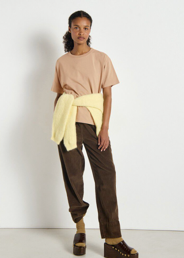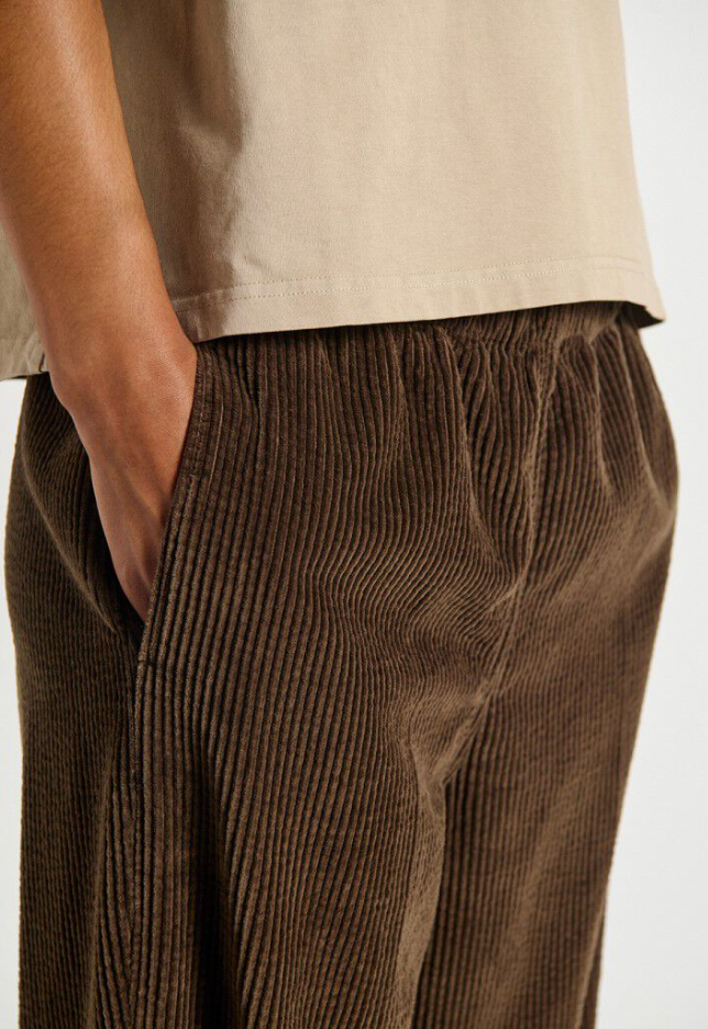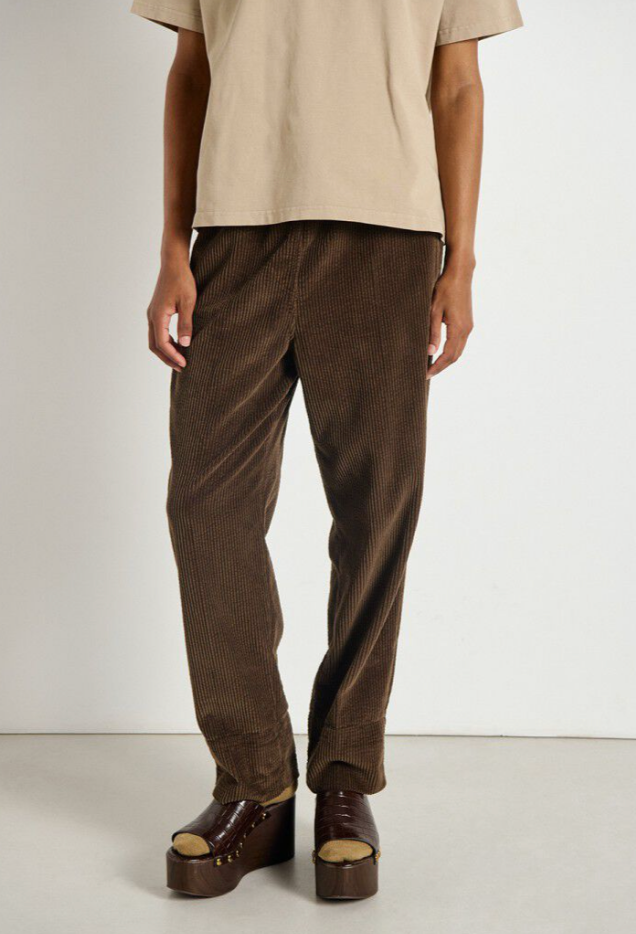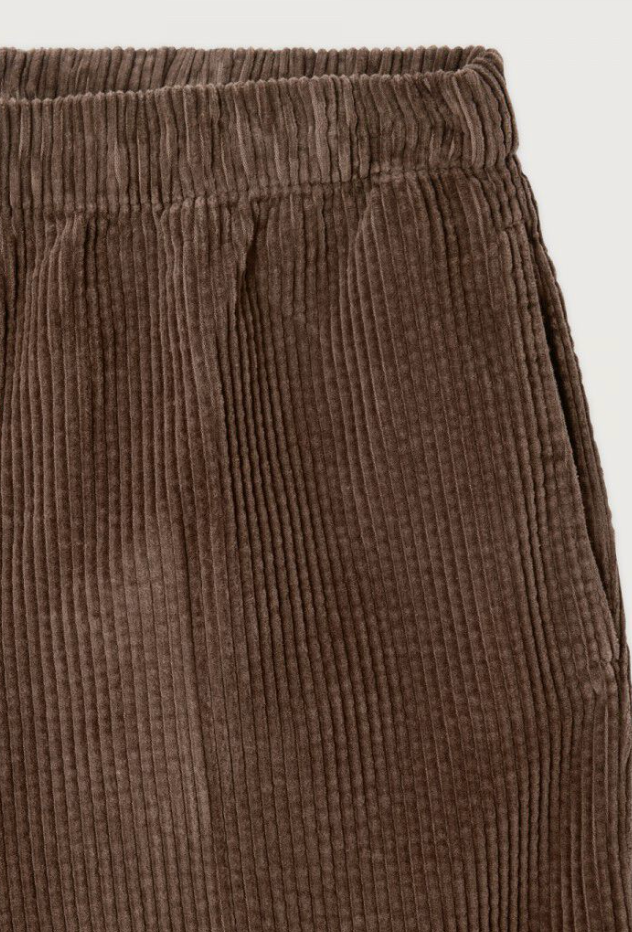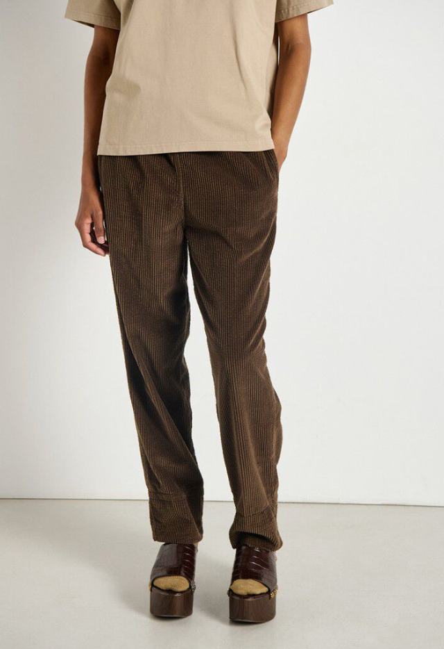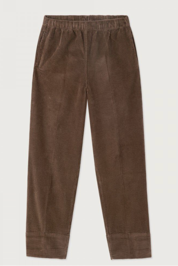 Fløjls bukser fra American Vintage. Bukserne har elastik i kanten og lommer i siderne. Bukserne går lige til anklen og har et straight fit.