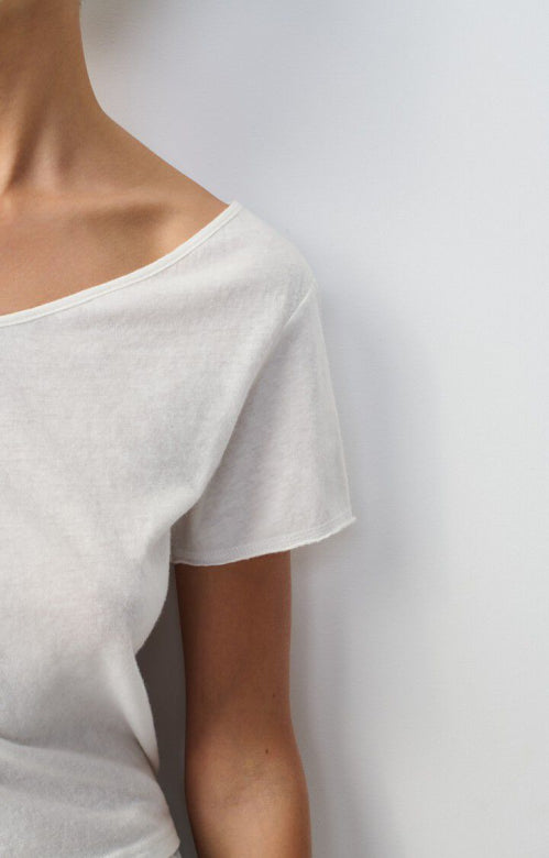 T-shirten har en let tætsiddende pasform, som skaber en flatterende silhuet uden at gå på kompromis med komforten. De synlige syninger tilfører et diskret og autentisk touch, og kvaliteten gør den perfekt både alene og som lag under jakker eller cardigans.