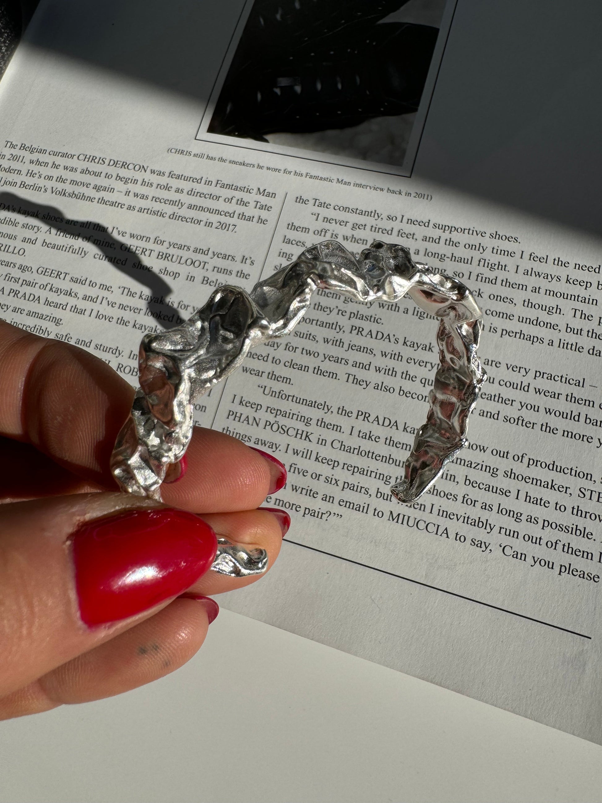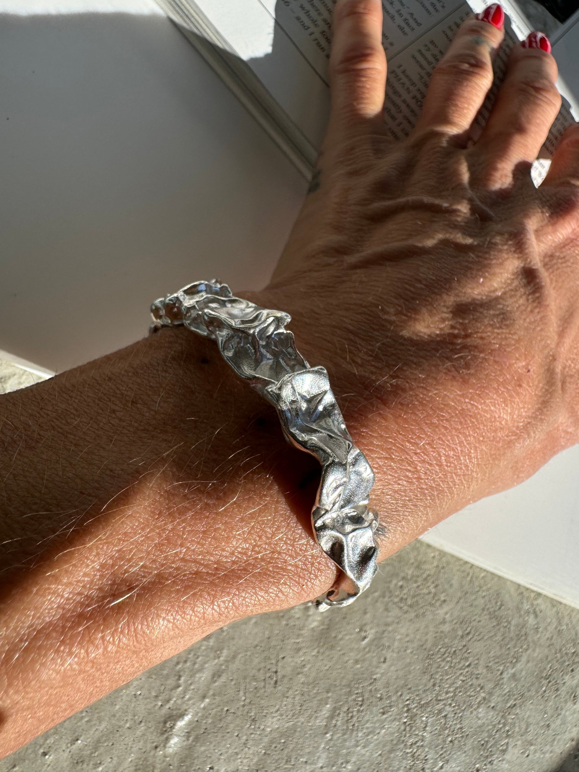 Dette Andcopenhagen-armbånd kombinerer en karakteristisk bølget form med en rustik overflade. Den justerbare størrelse sikrer en god pasform, mens det organiske design gør armbåndet til et særligt statement-smykke.