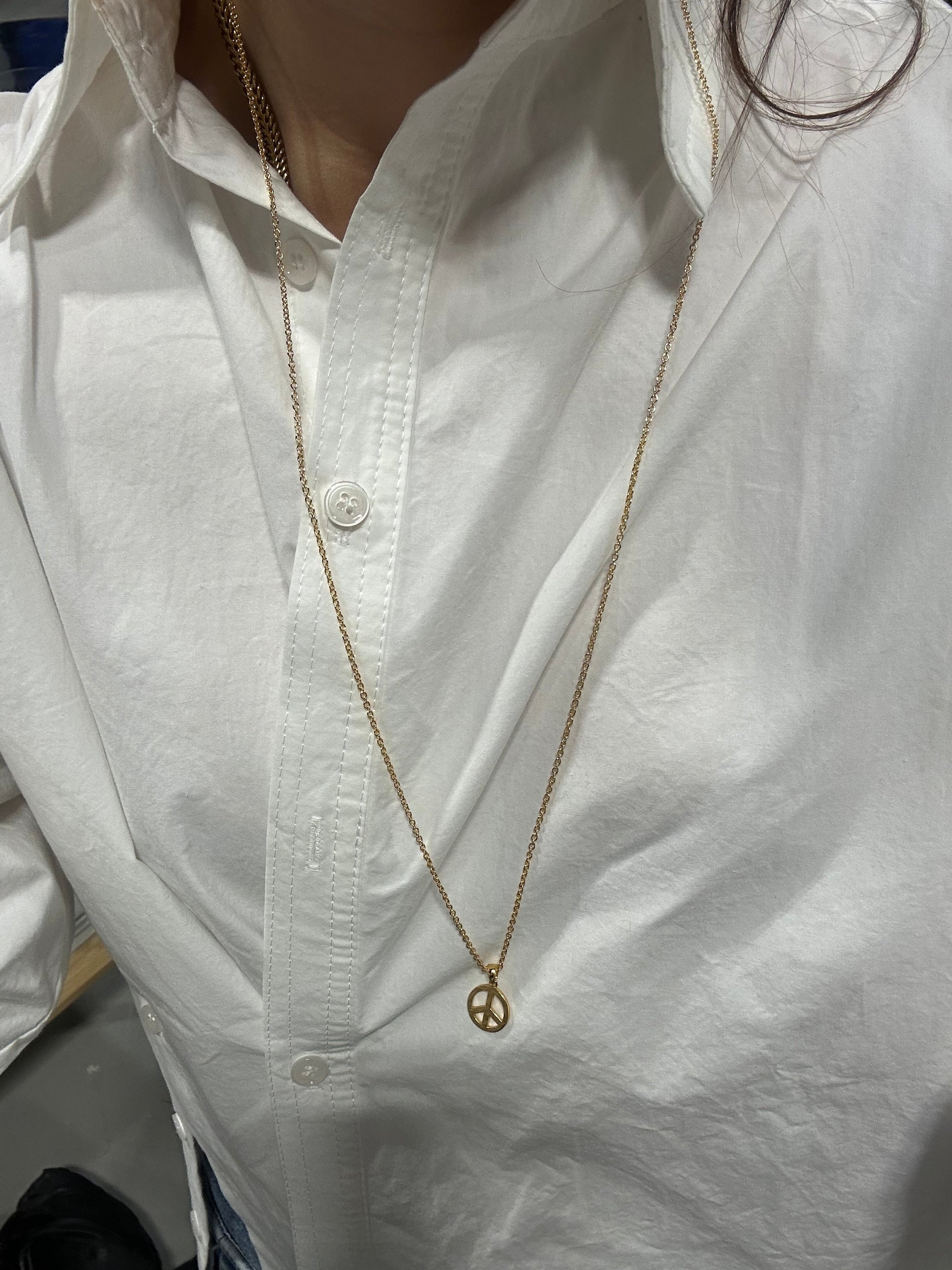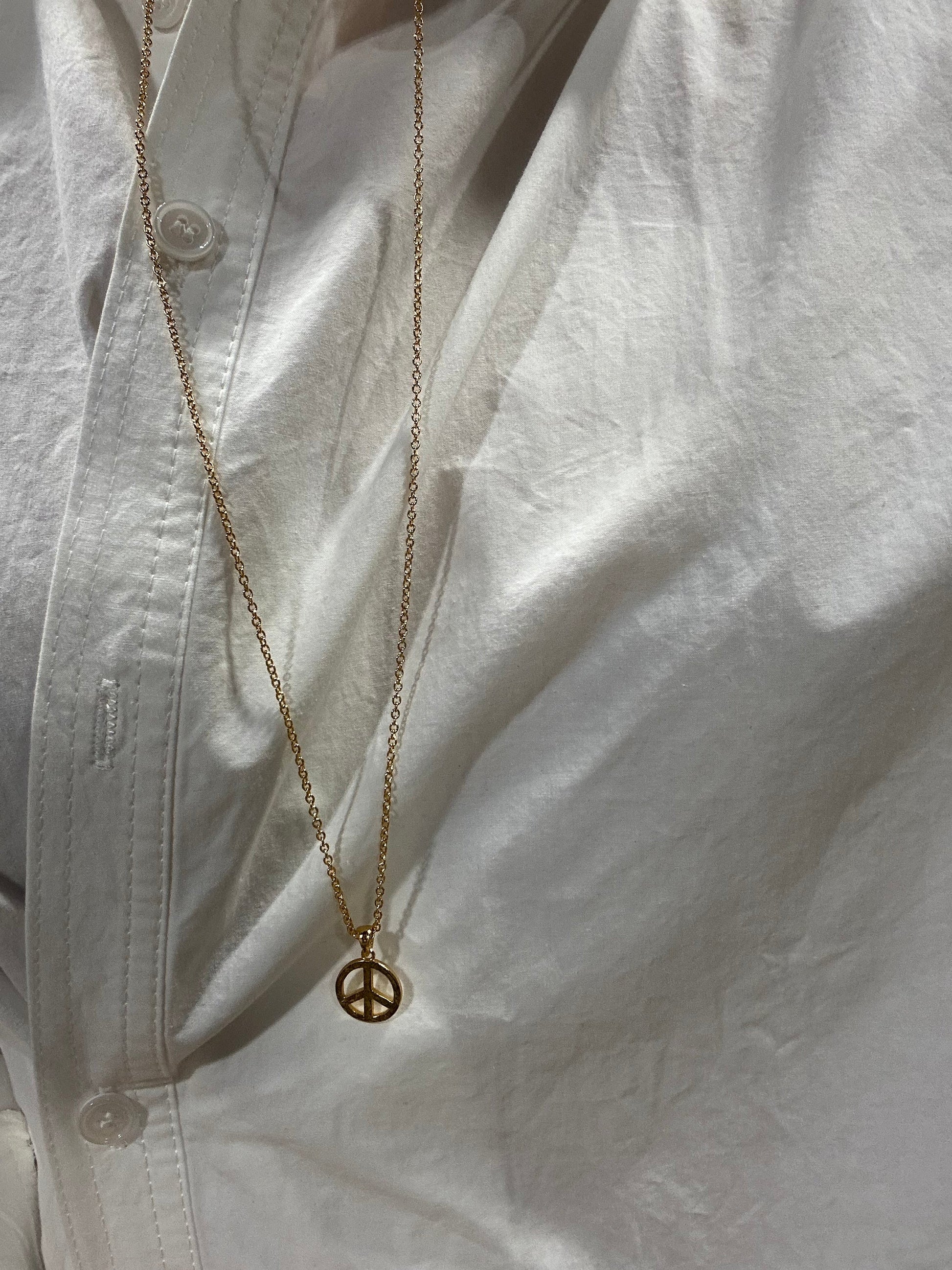 Andcopenhagen halskæde med det karakteristiske peace-symbol som vedhæng. Den justerbare kæde giver dig frihed til at style den efter dit outfit. Et statement-piece, der lader dig udtrykke dine værdier gennem dit look.