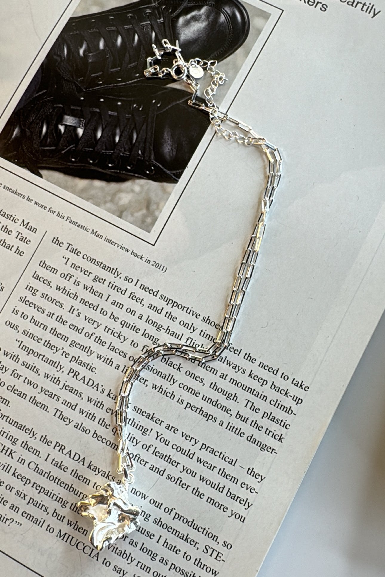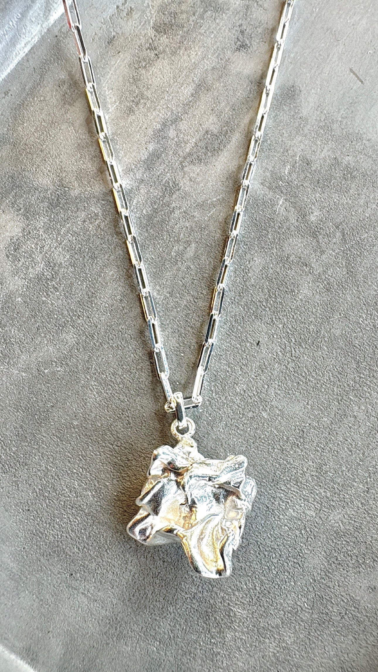 Halskæde med kunstnerisk vedhæng i 925 sterlingsølv. Den justerbare længde på 14,5 cm plus 3,5 cm ekstra gør det alsidigt til forskellige outfits. Vedhænget måler 2 cm i længden.