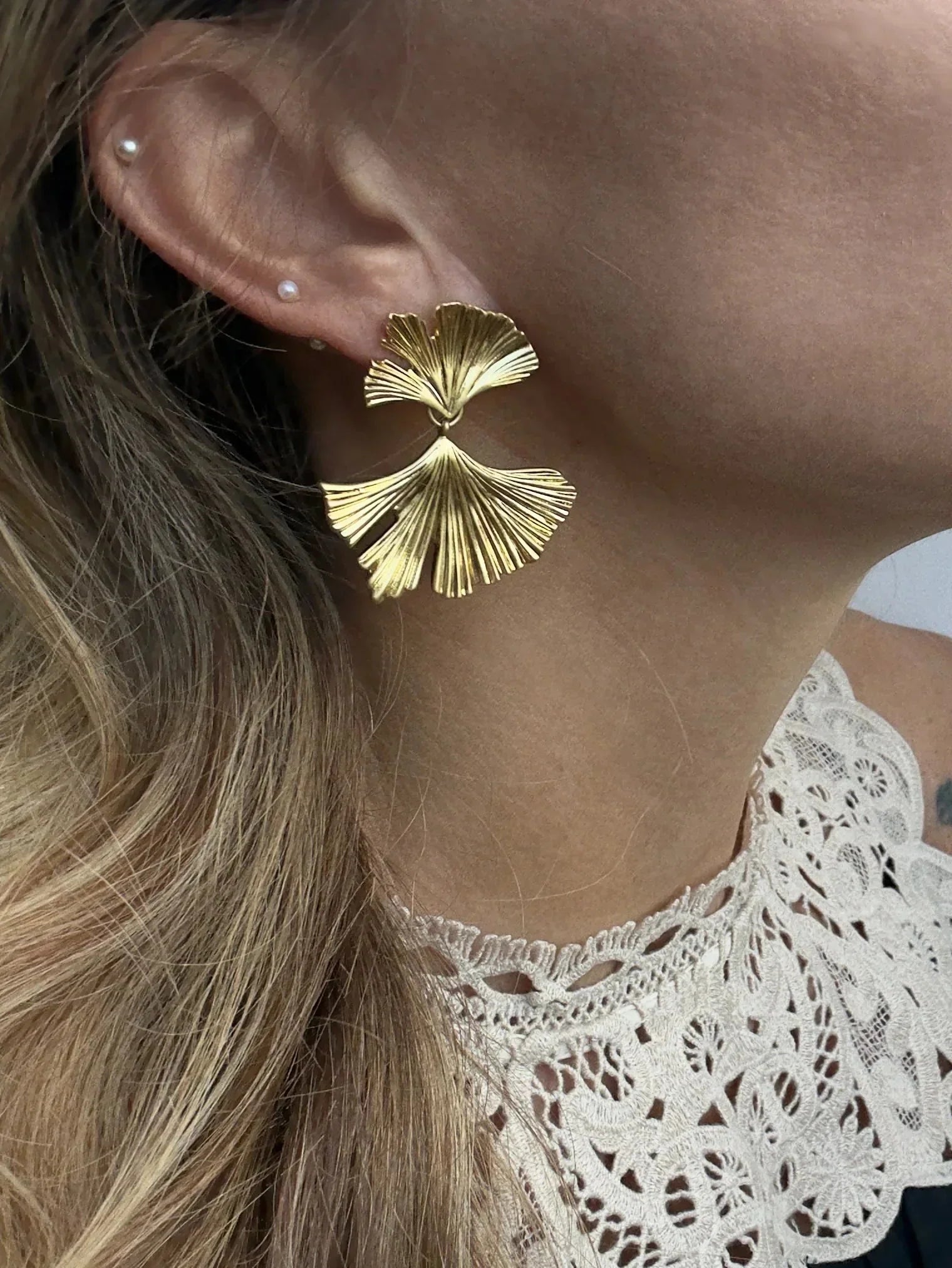 Andcopenhagen - Ørering studs - 18 karat guldbelagt 925 sterlingsølv - Ferskvands perler - Lille jazz pearl