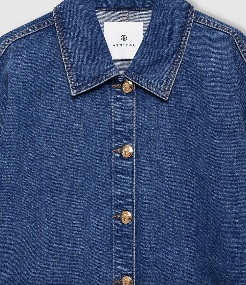 Denne Anine Bing Luca-jakke har en oversize pasform med sænkede skuldersømme. De guldfarvede monogramknapper og to påsatte lommer giver jakken et markant udtryk, der passer godt til sociale sammenkomster.