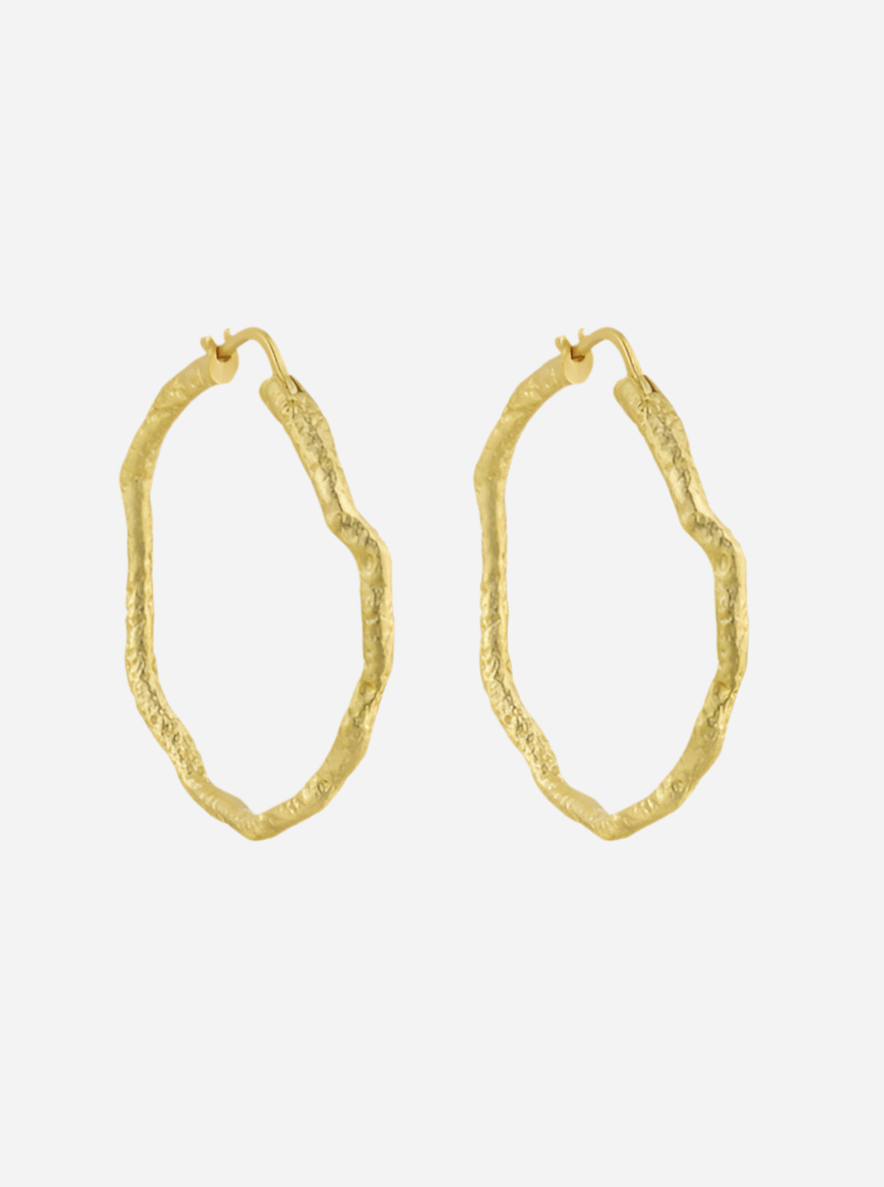 Disse hoops fra Andcopenhagen har en karakteristisk hamret tekstur, der skaber et spændende lysspil. Med en diameter på 2,8 cm er de velegnede til både hverdag og særlige anledninger.