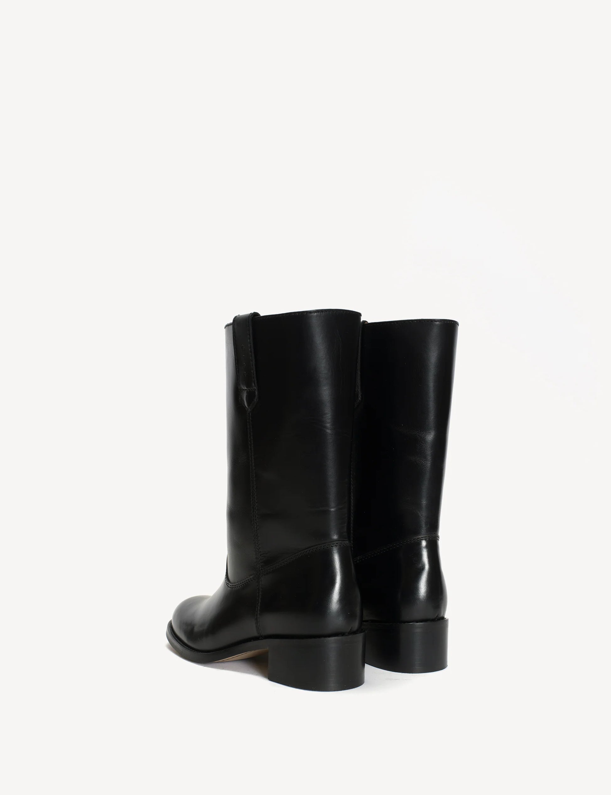Støvlen har et mellemhøjt skaft og en rund snude, som giver en harmonisk og alsidig silhuet. Den 35 mm hæl tilfører et diskret løft og sikrer komfort hele dagen. Den slidstærke THUNIT-ydersål er særligt udviklet med høj modstandsdygtighed over for slidtage, hvilket gør støvlen velegnet til daglig brug.
