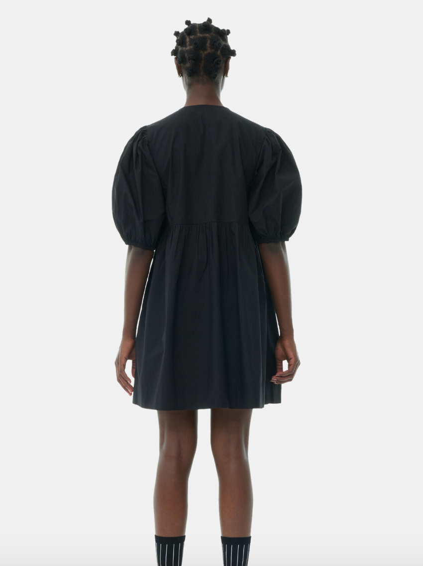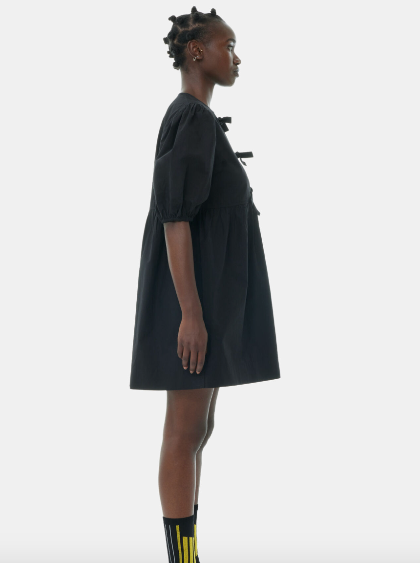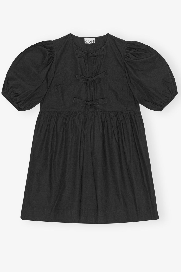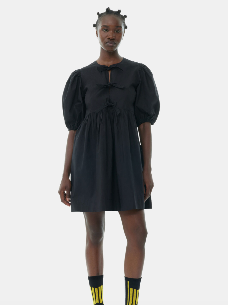 Ganni - Kjole - Black - Poplin tie string mini dress