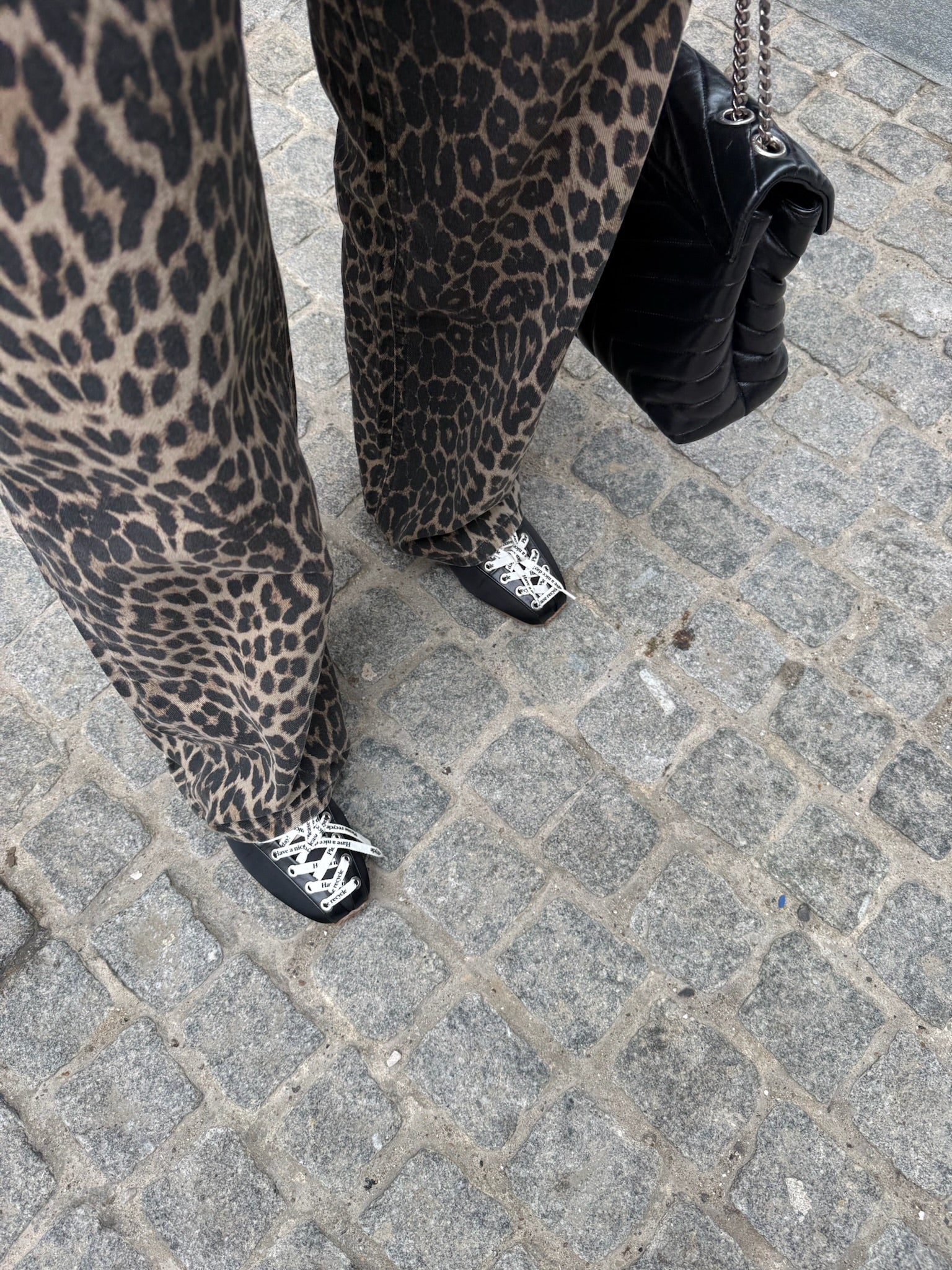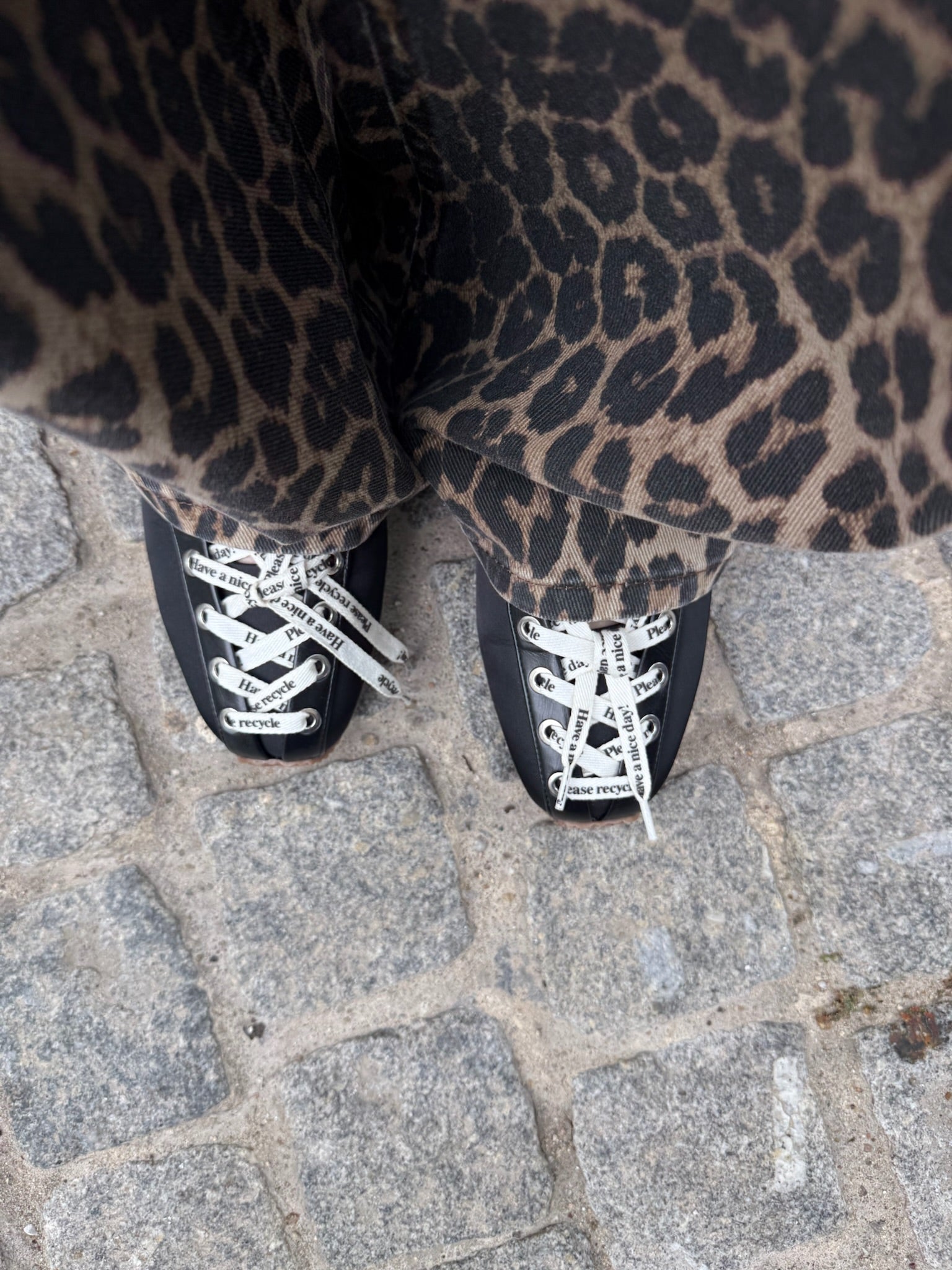 Den flade sål sikrer høj komfort til hverdagsbrug, mens den runde tå giver et afslappet og tidløst udtryk. De sorte snørebånd med print tilfører et grafisk twist og understreger det sporty design. Fremstillet i 93% recycled polyamide er disse Ganni ballerina sko et stilbevidst og mere bæredygtigt valg.