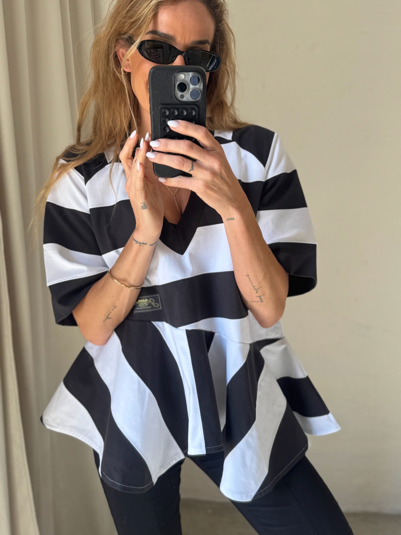 Ganni - T-shirt - Black/White striped - Heavy cotton peplum