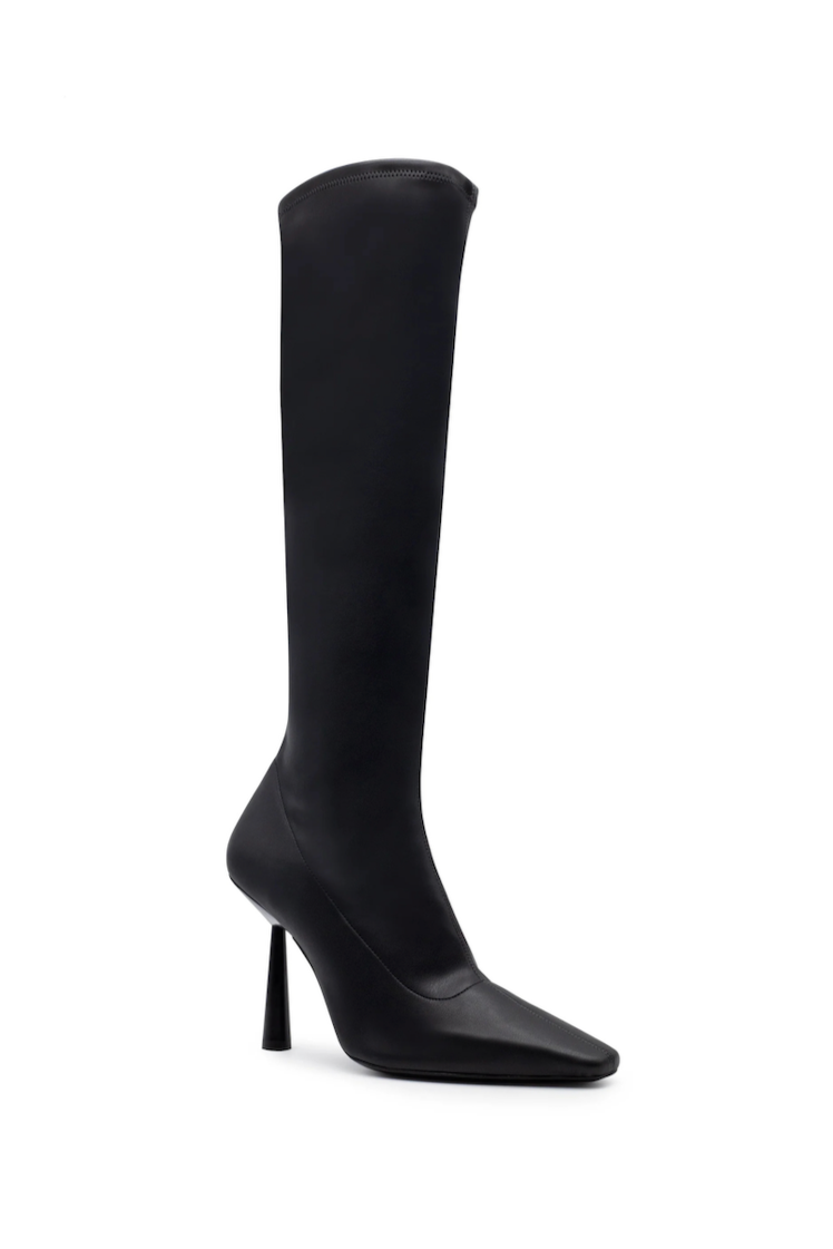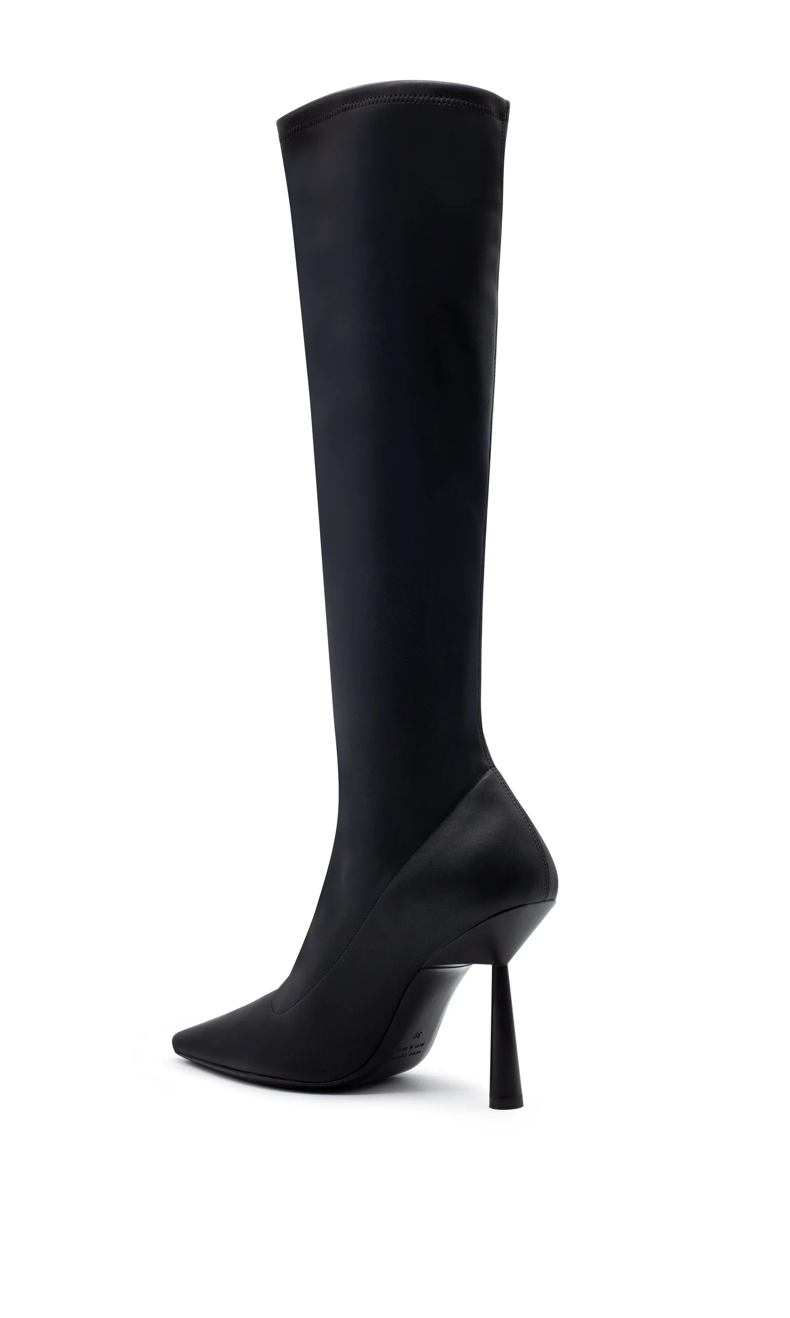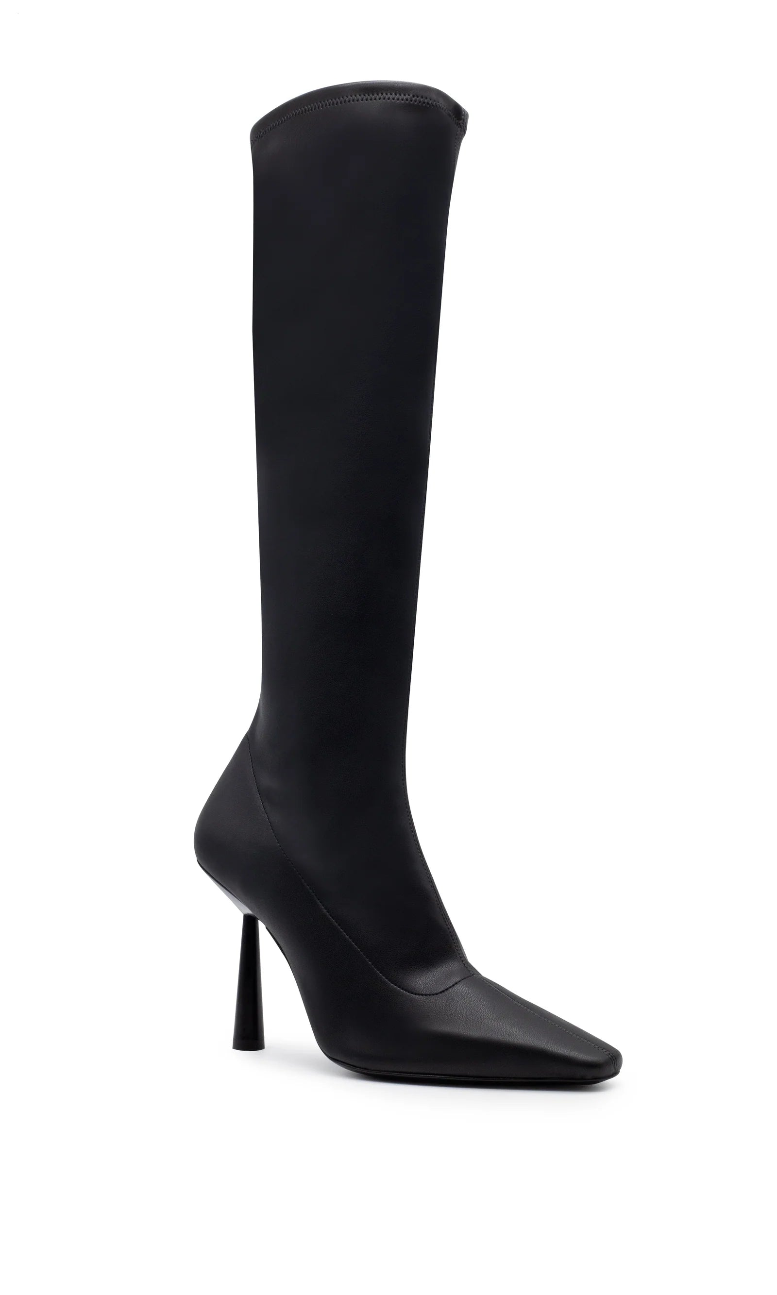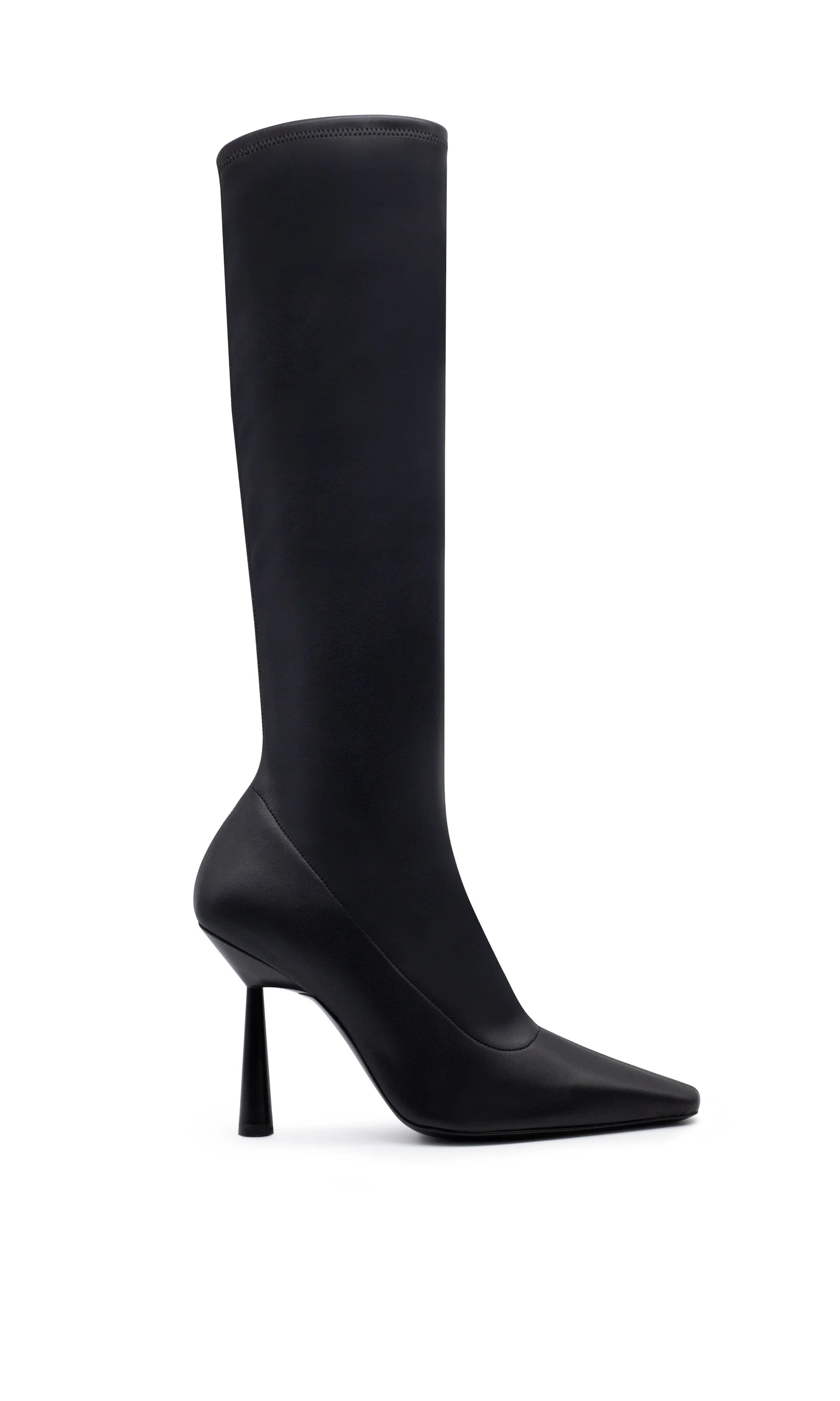 Denne knæhøje støvle fra Gia Borghini kombinerer et strækbart imiteret læder med en markant 10 cm konisk hæl. Det sorte design giver dig en støvle, der både har karakter og komfort.