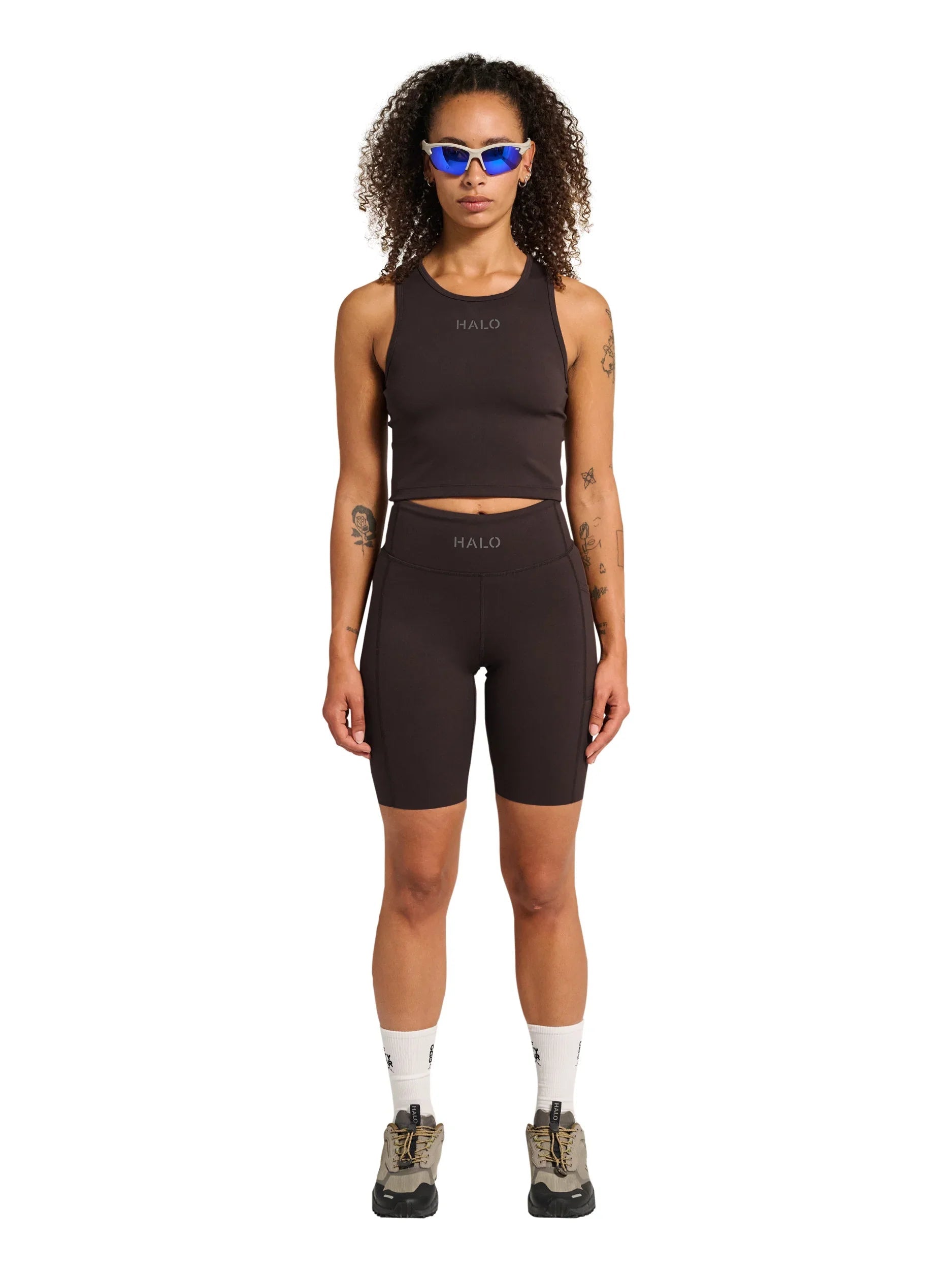 Disse træningsshorts fra Halo, til kvinder er designet til at yde høj komfort og bevægelsesfrihed under intens træning. Det bløde og elastiske materiale sikrer en tætsiddende pasform, der følger kroppens bevægelser uden at hæmme dem. Farven Chocolate Torte giver et stilfuldt og naturligt udtryk, der nemt kan kombineres med øvrigt træningstøj.