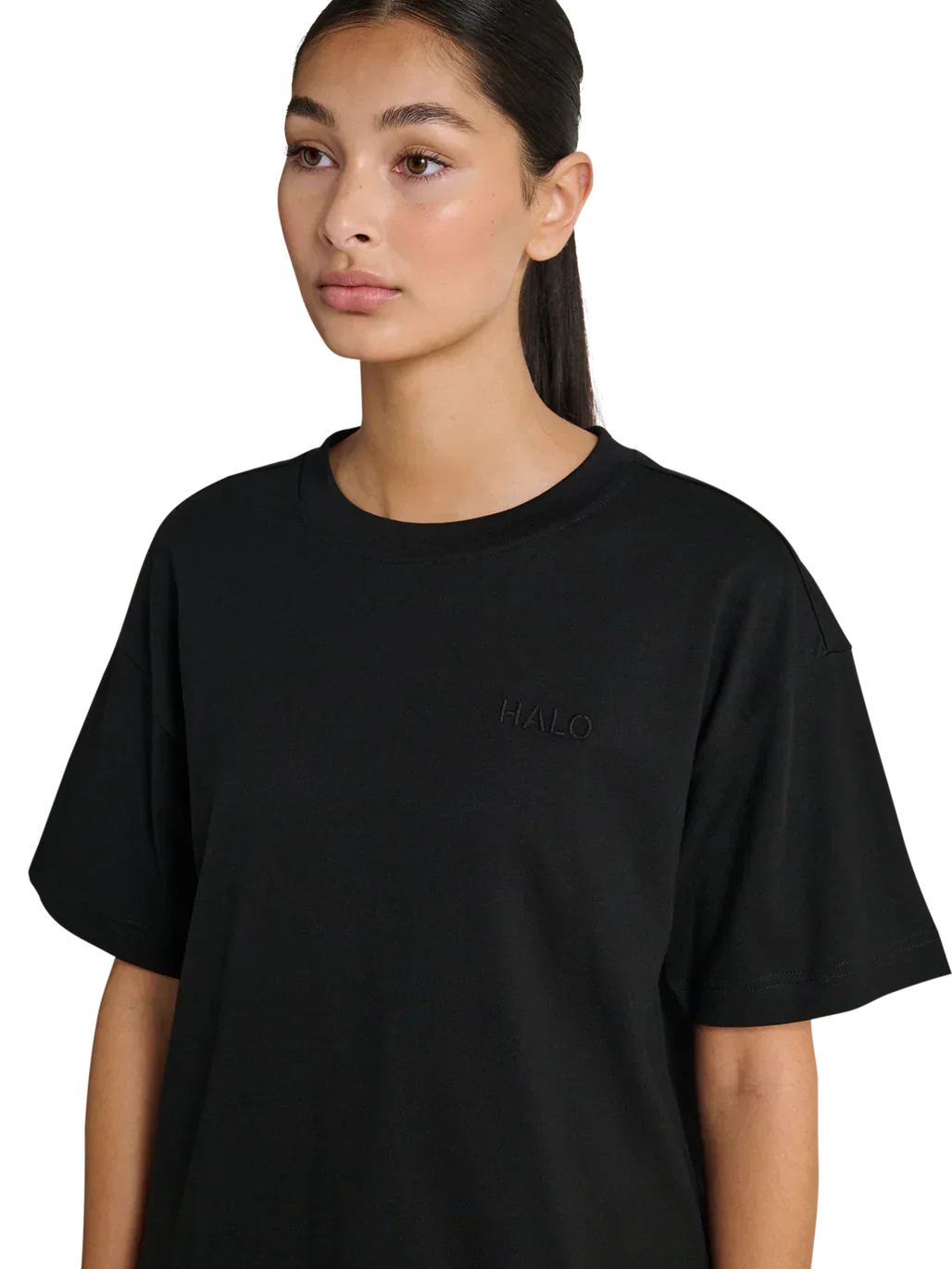 Pasformen er bevidst holdt løs for at skabe et afslappet udtryk, der fungerer både alene og som del af et lag-på-lag look. Det diskrete broderede HALO-logo er integreret ton-i-ton og giver et stilrent finish uden at tage fokus fra det enkle design.