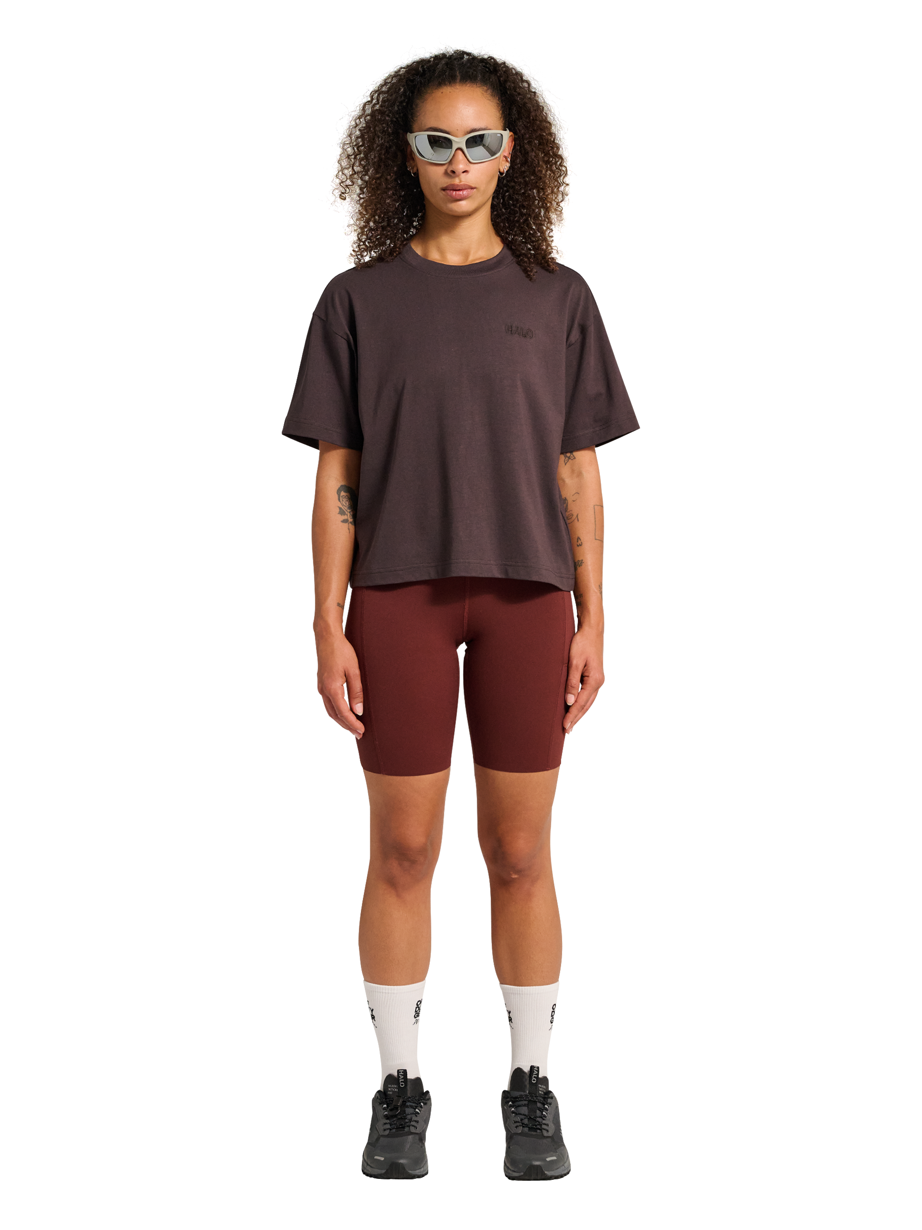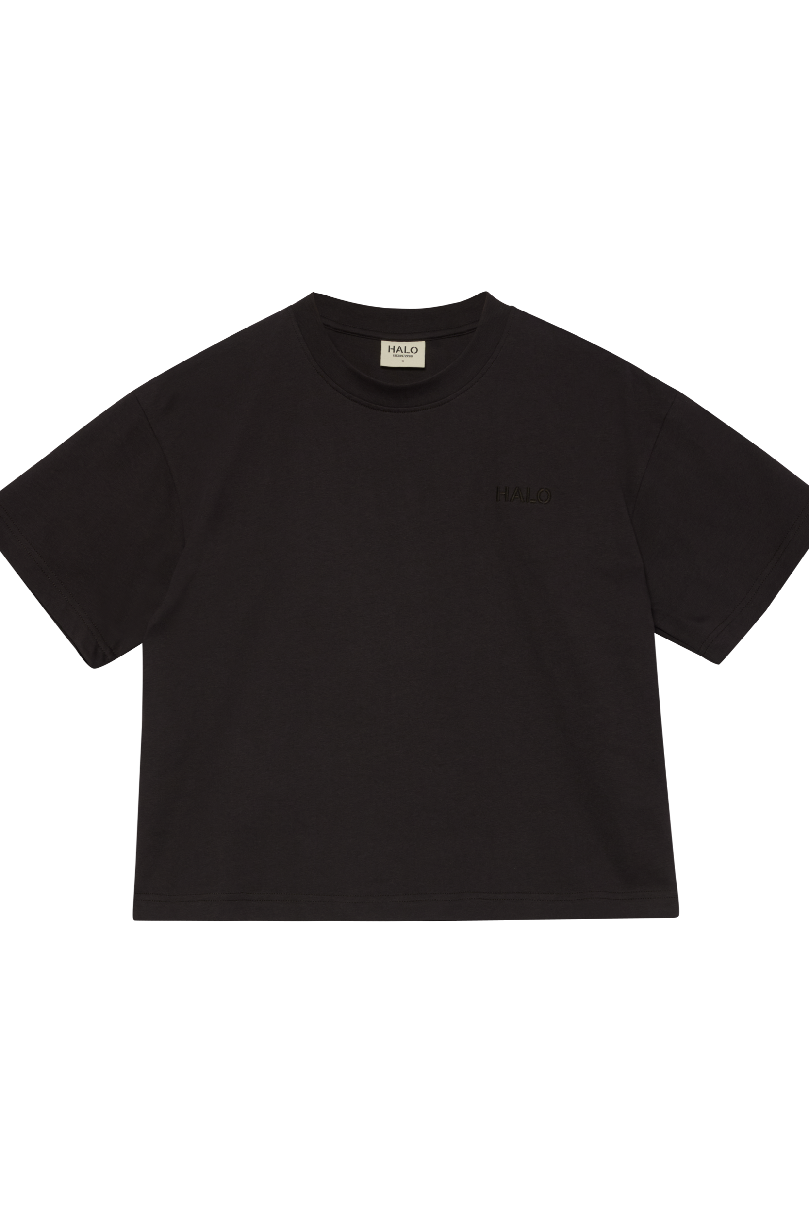 T-shirten har en løs, afslappet pasform med et diskret broderet HALO-logo på brystet.