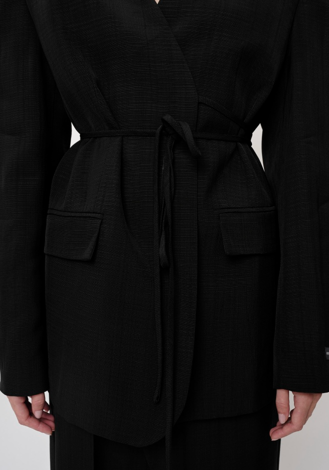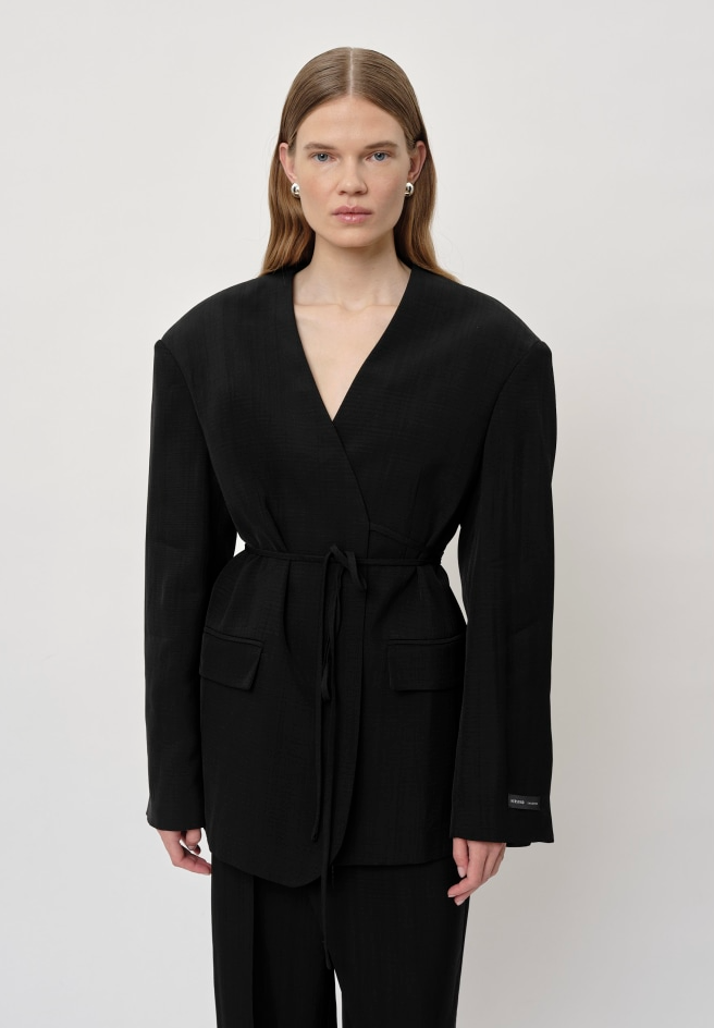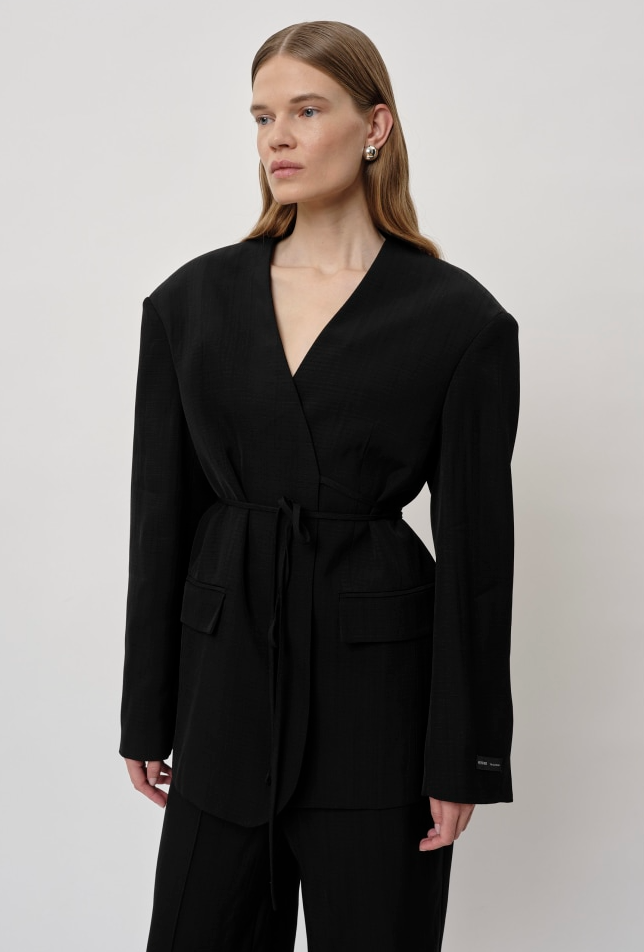 Blazeren har en oversized silhuet med paspel-lommer og brede ærmer for optimal bevægelsesfrihed.