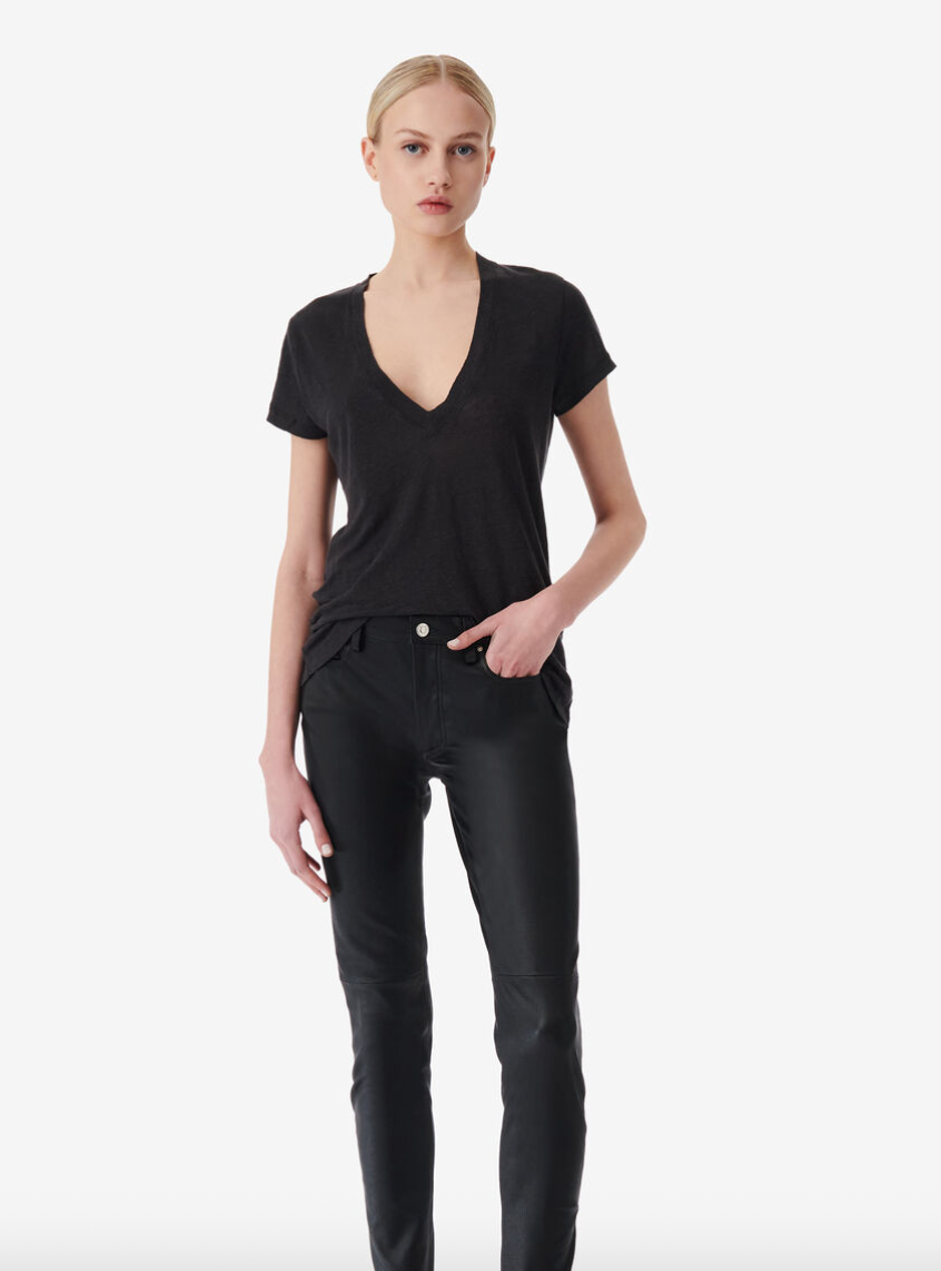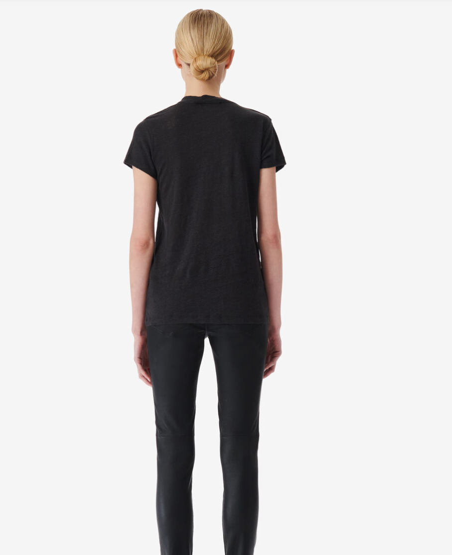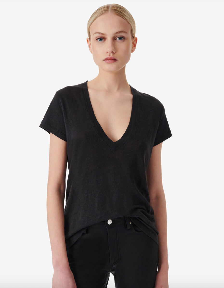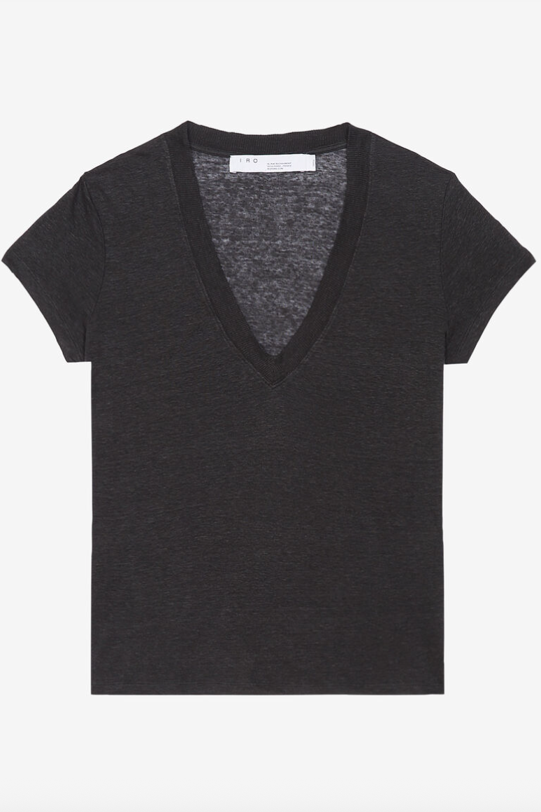 Denne IRO t-shirt kombinerer den løse pasform med hørmaterialets naturlige fald. Den dybe V-udskæring gør t-shirten ideel til afslappede dage med shopping eller cafébesøg, hvor du ønsker et stilrent look.