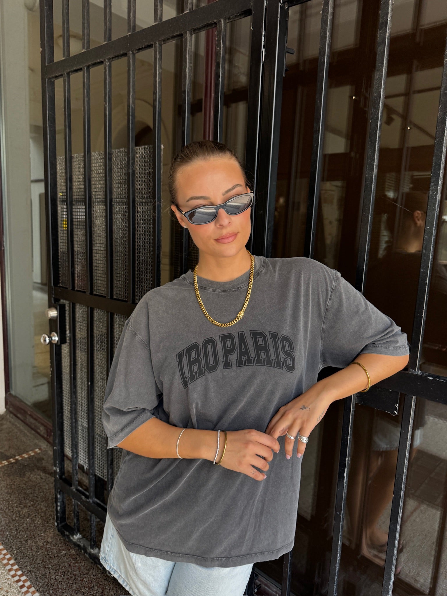 T-shirten har en løs, oversized pasform med længere ærmer og IRO PARIS-logo på brystet.