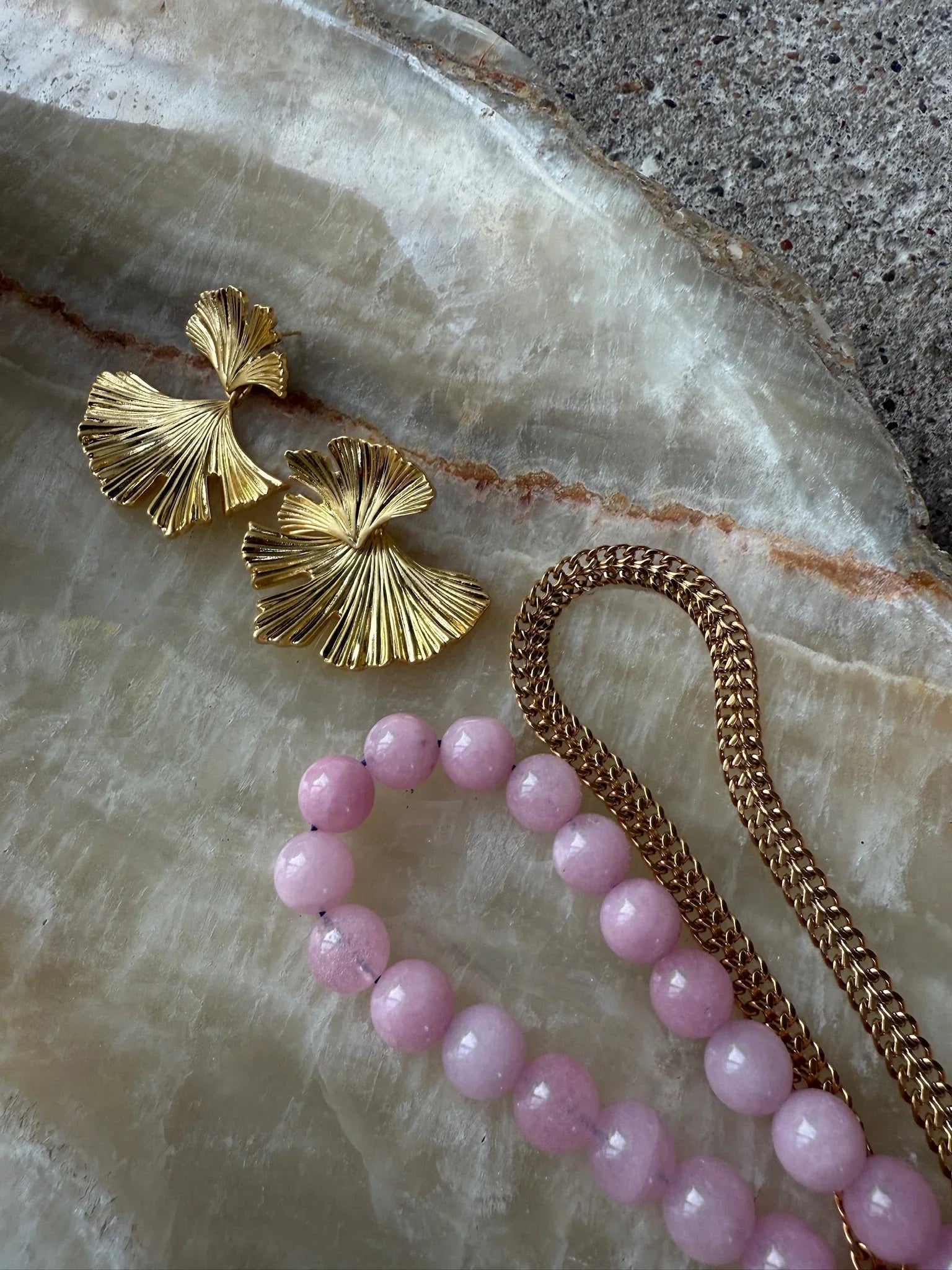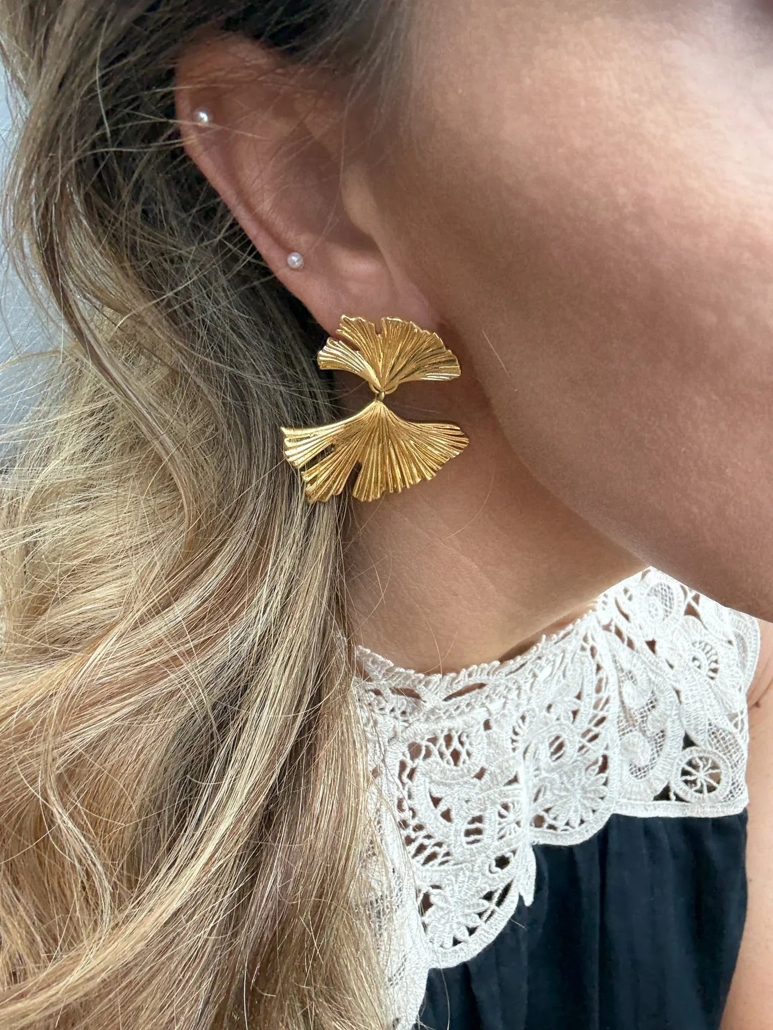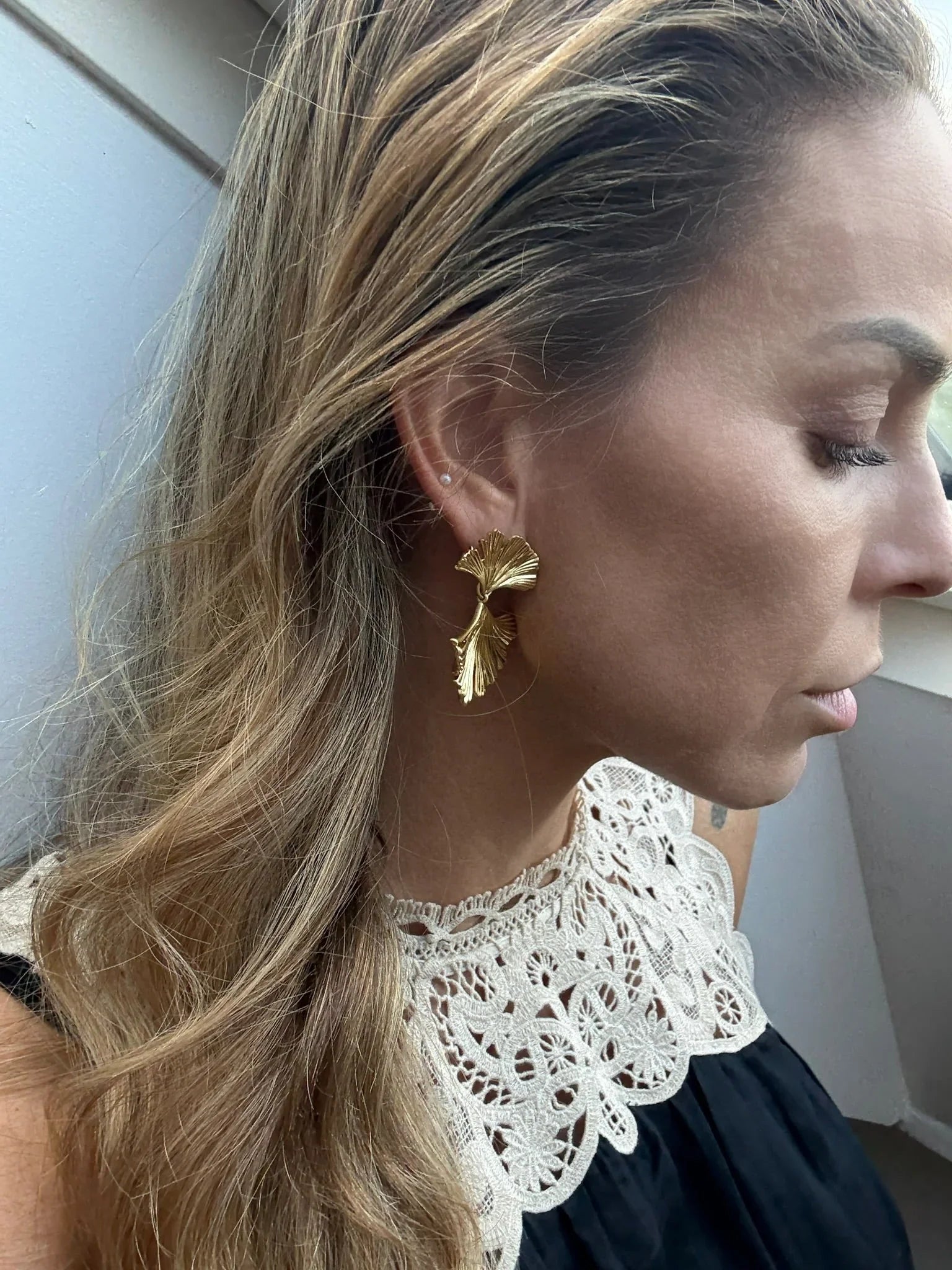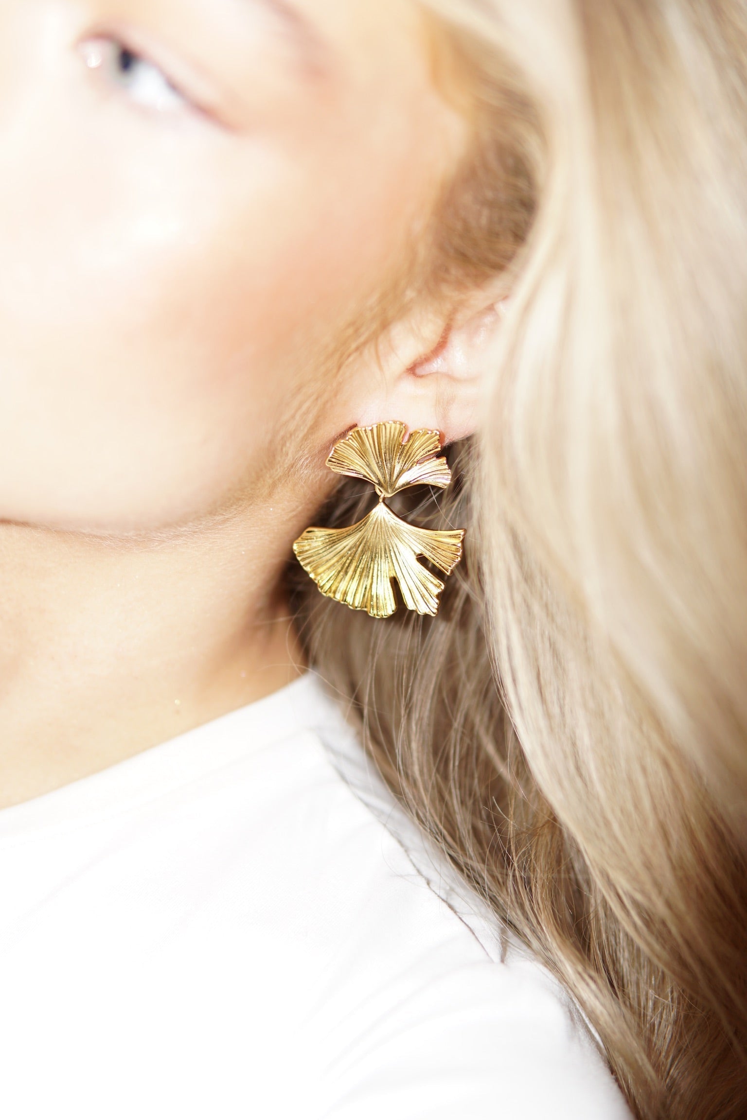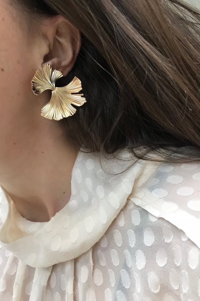 Bladformede øreringe med gylden finish