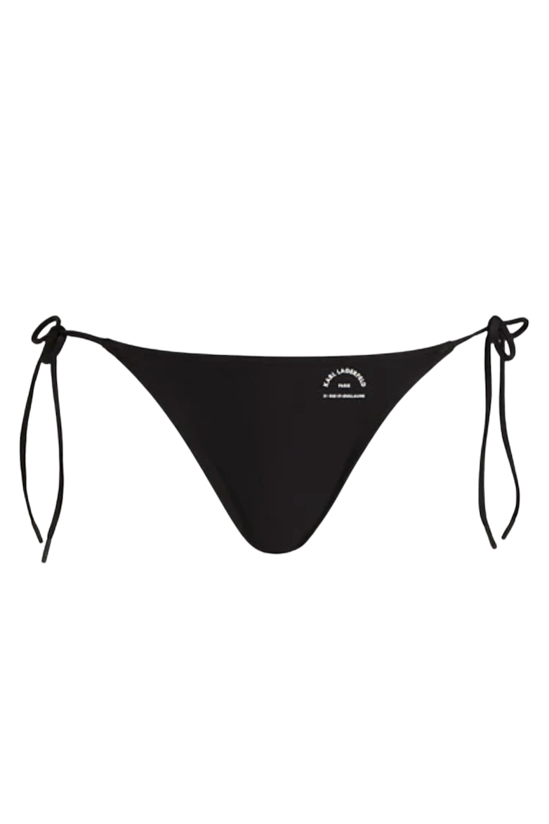 Karl Lagerfeld - Bikini trusse - Sort er en praktisk del af din strandgarderobe. Disse sorte bikinitrusser kombinerer komfort med et moderne design. Den lave talje og de justerbare snøringer i siderne giver dig mulighed for at tilpasse pasformen efter din krop. Fronten prydes af det kontrasterende Rue St-Guillaume kunstværk, som tilfører et særligt præg til designet.