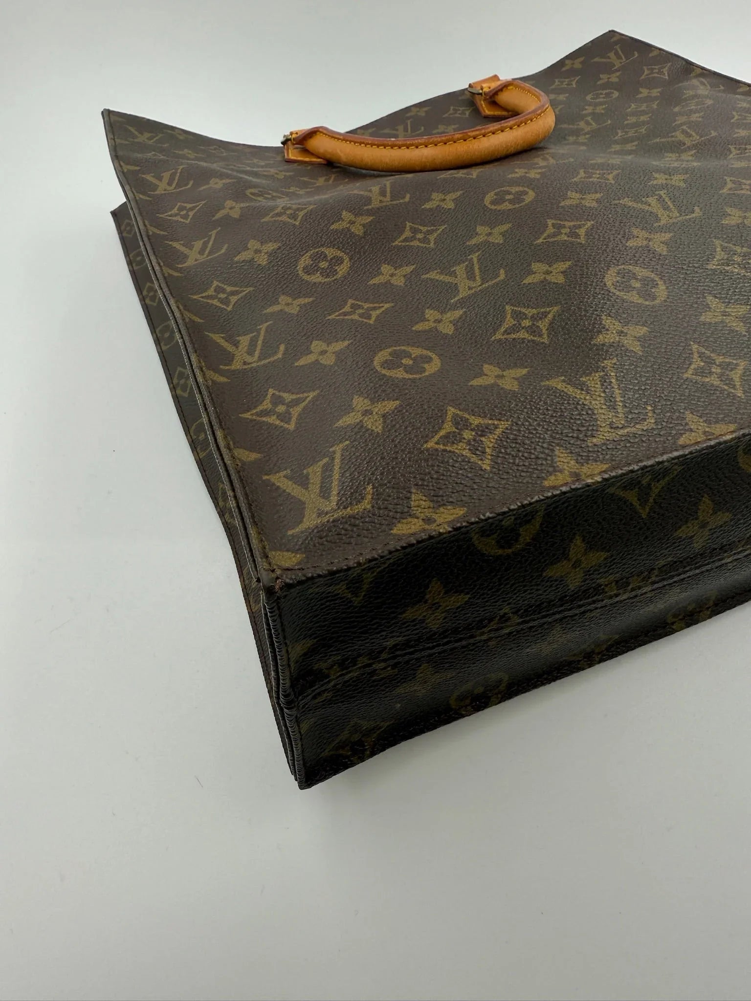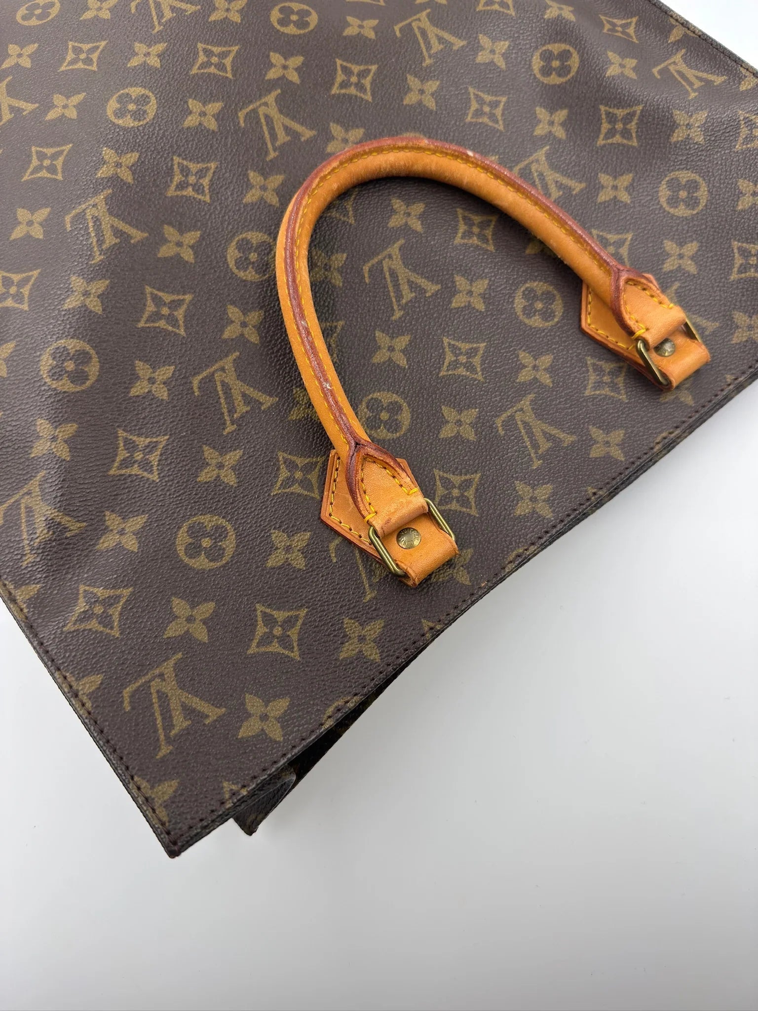 Denne Louis Vuitton Sac Plat er en elegant og tidløs taske fremstillet i det velkendte Monogram Canvas, som understreger brandets ikoniske stil. Taskens flade silhuet og stringente form giver et klassisk udtryk, der fungerer perfekt til både arbejde og daglig brug. De solide håndtag i vachetta-læder har fået en naturlig patina over tid, hvilket tilfører tasken karakter og autentisk vintage-charme.