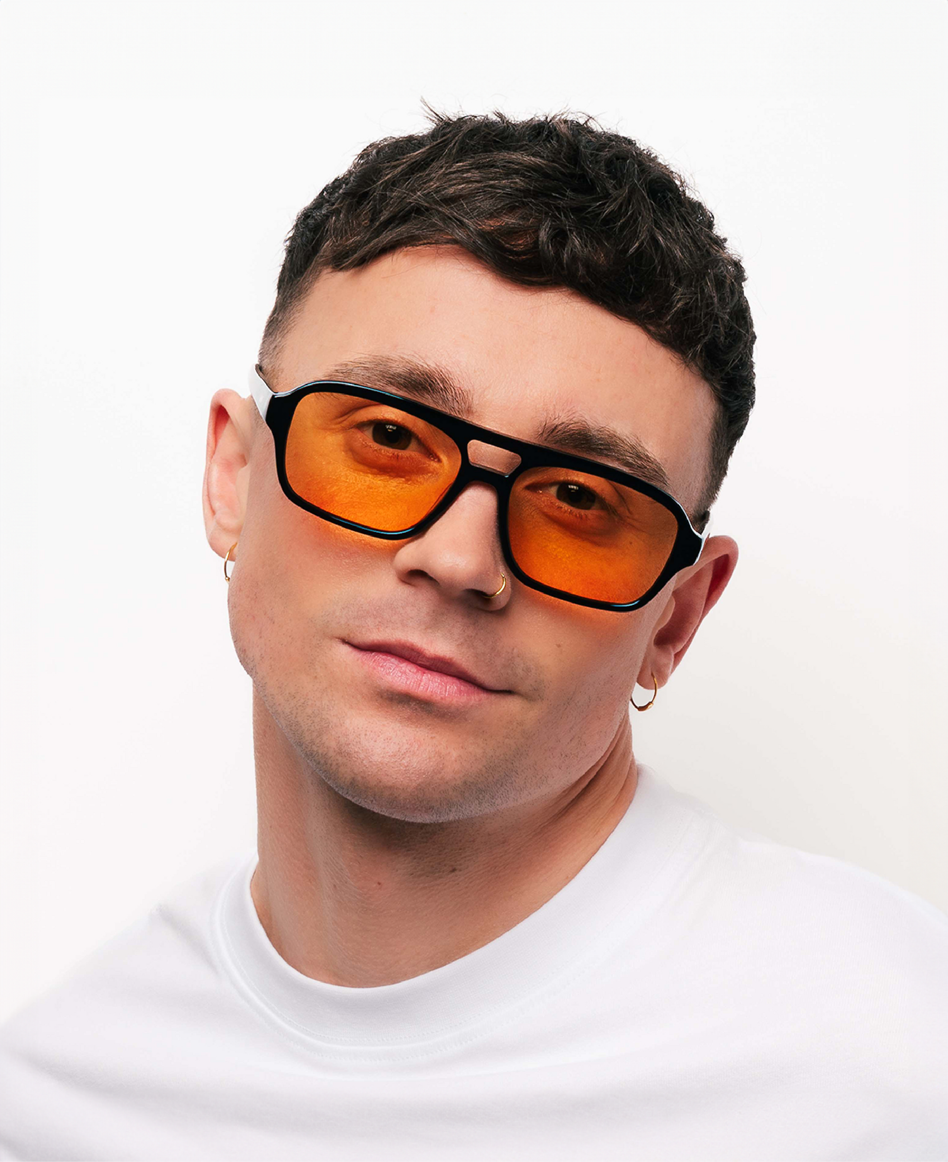 Fremstillet i 100% acetat, hvilket sikrer en solid kvalitet og en behagelig pasform. De orange linser giver et blødt og kontrastforbedrende udsyn, samtidig med at de beskytter effektivt mod solens stråler.