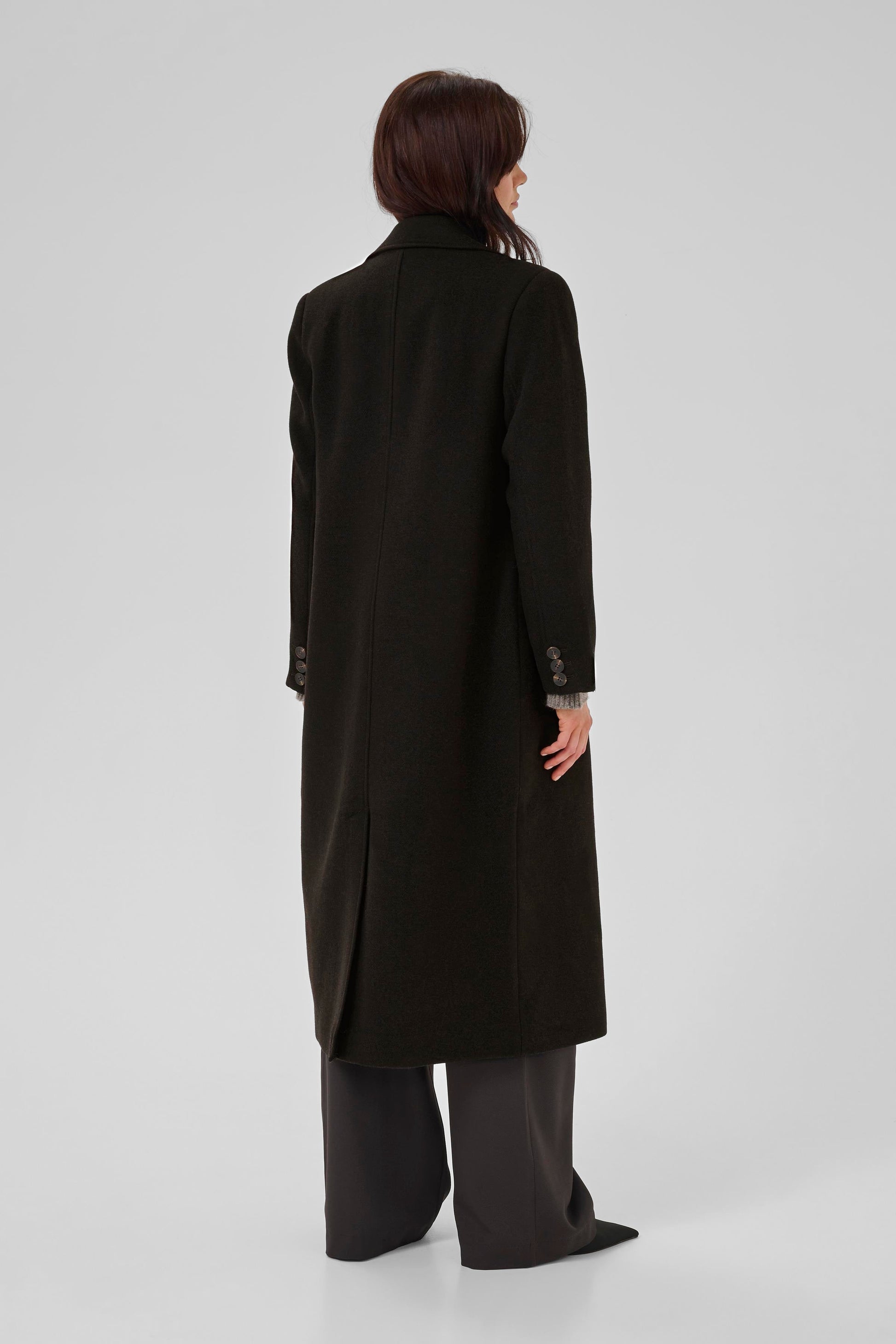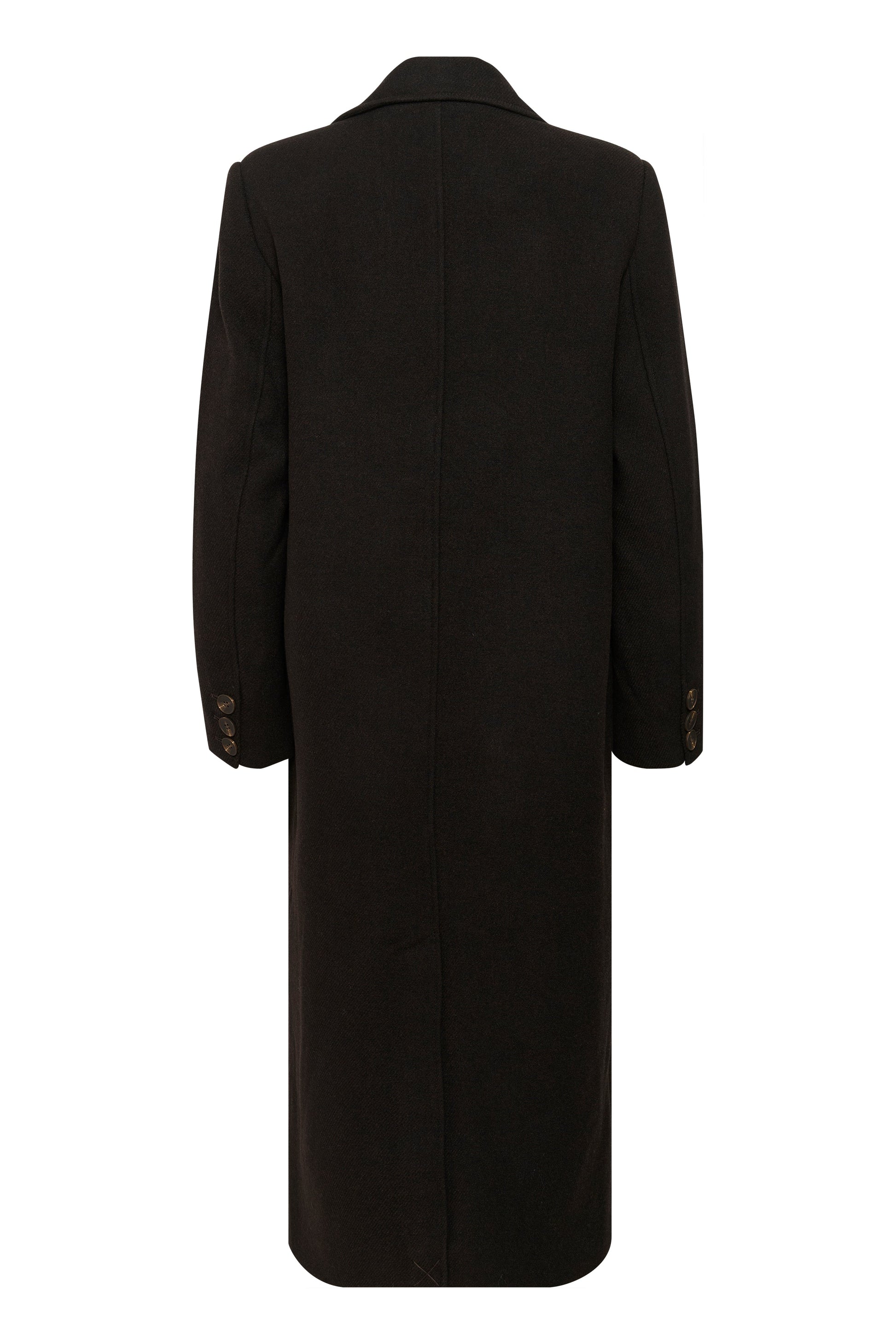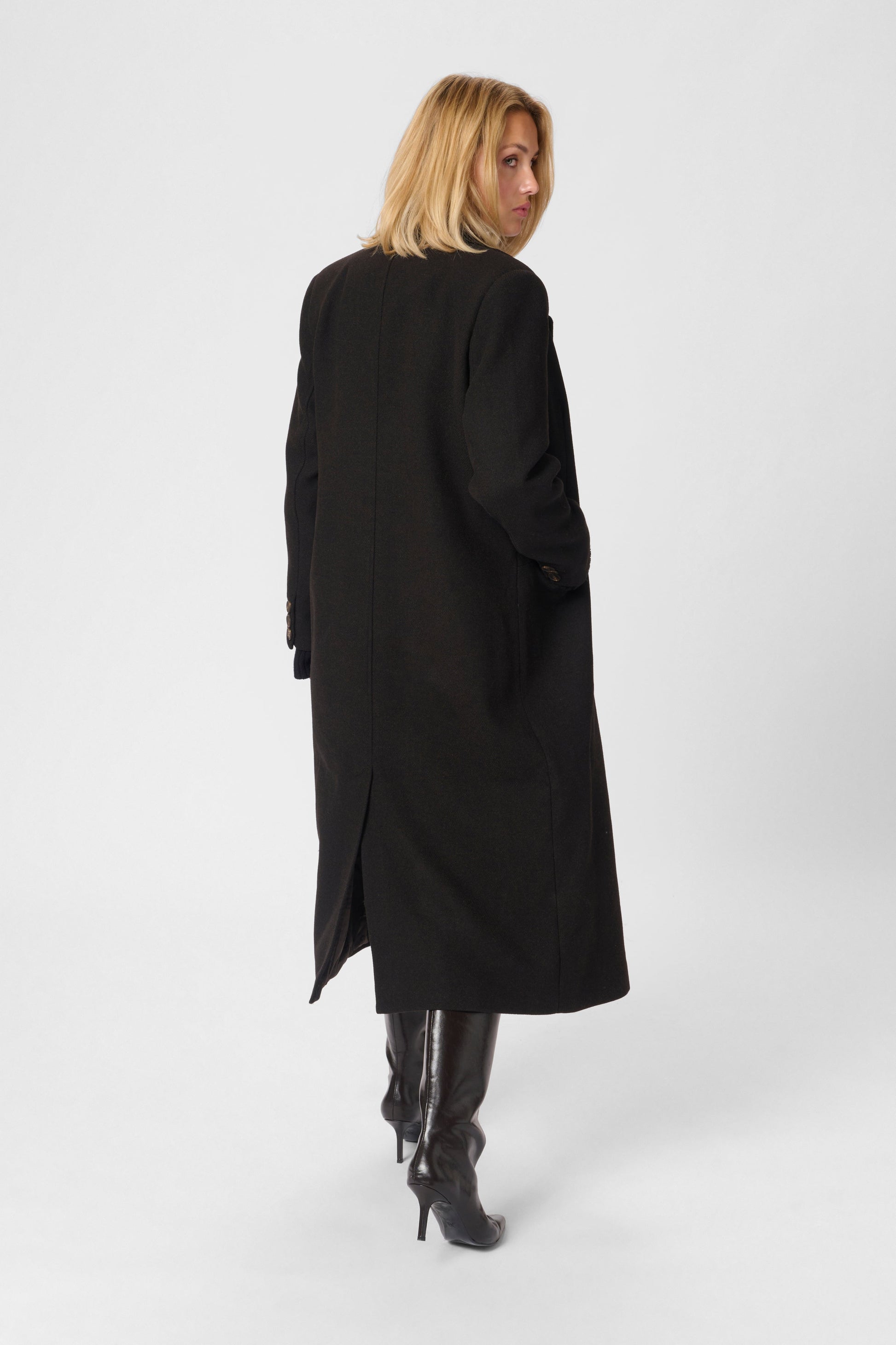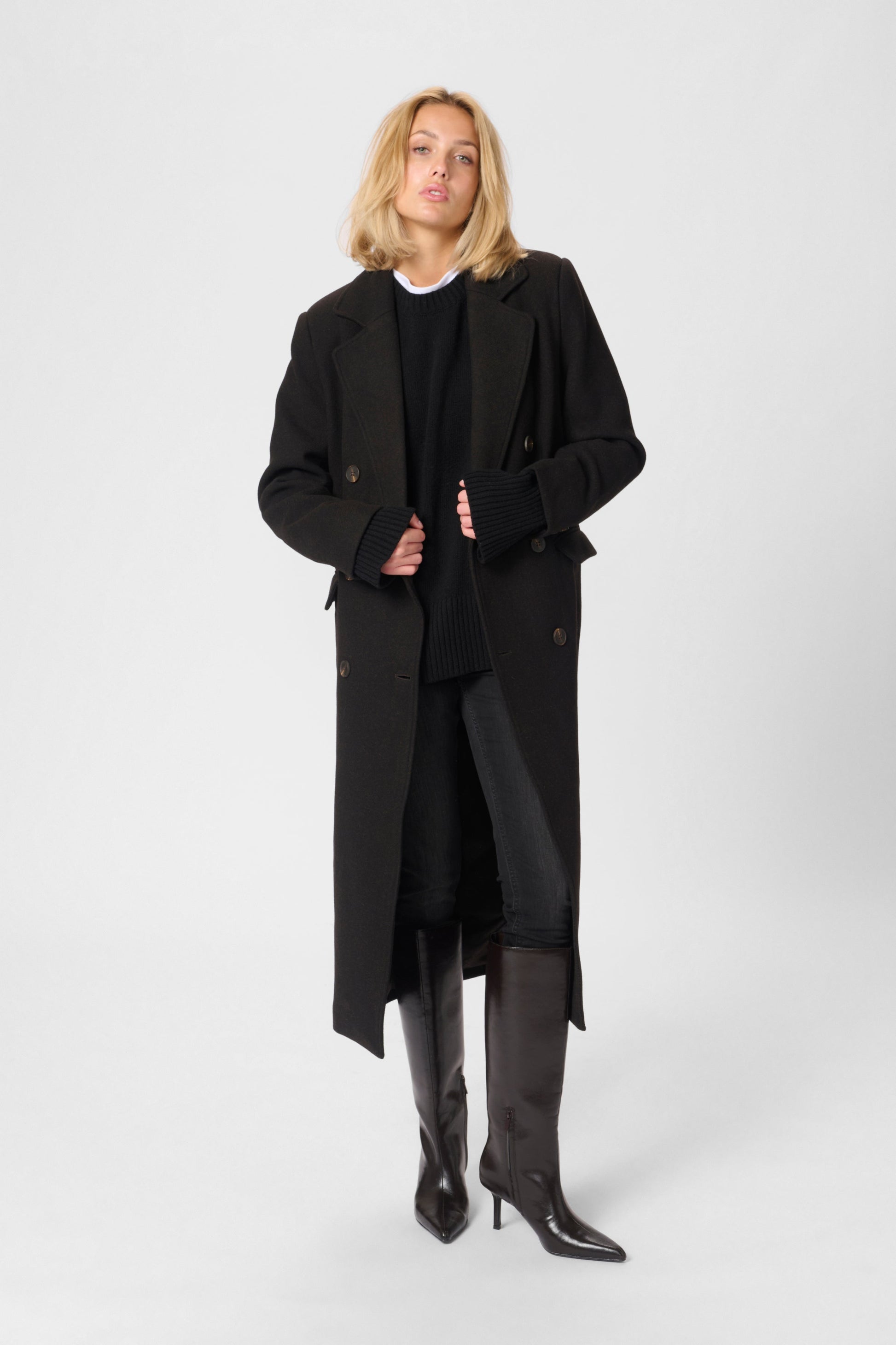 Denne trenchcoat kombinerer uld og polyester i et 50/50-forhold, hvilket giver dig både naturlig varme og holdbarhed i ét. Den lange silhuet sikrer god dækning, mens V-udskæringen skaber en klassisk profil.