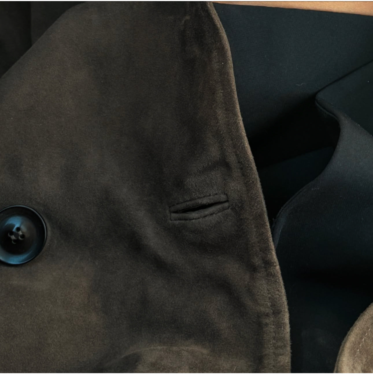 Fremstillet i 100% ruskind opnår denne jakke en ideel balance mellem luksuriøst design og praktisk funktionalitet. Materialevalget sikrer ikke kun et smukt udseende, men også en behagelig fornemmelse mod huden og god beskyttelse mod vind og vejr. Denne trenchcoat tilbyder en kombination af stil, komfort og kvalitet, der gør den til et værdifuldt supplement til enhver garderobe. Den optimale harmoni mellem design og funktionalitet gør denne trenchcoat til et alsidigt og praktisk valg for den moderne kvinde.