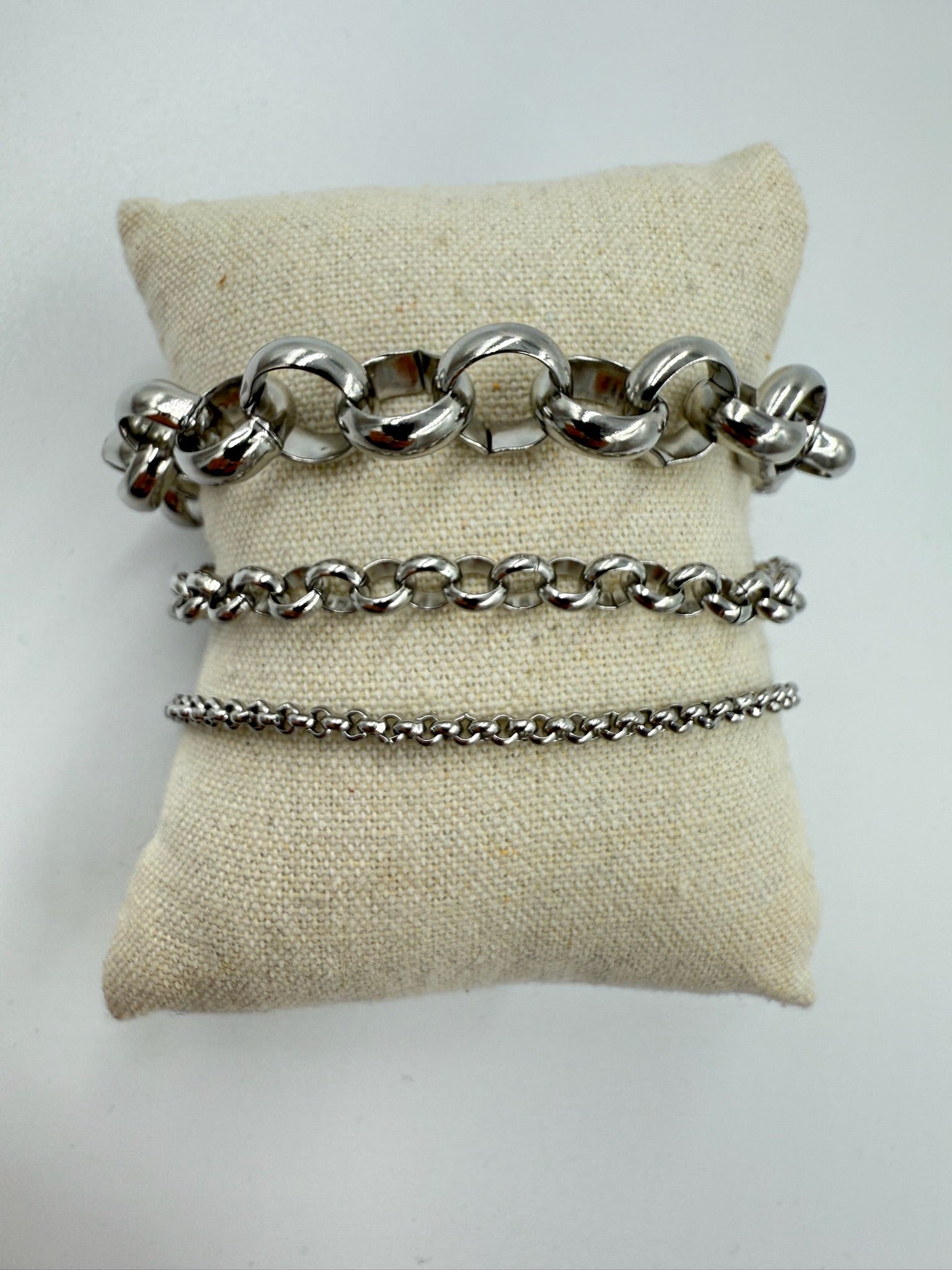 Dette Mia Medium armbånd fra Nine kombinerer et klassisk kædedesign med praktiske egenskaber. Det er fremstillet i rustfrit stål med allergivenlige materialer, der gør det sikkert og behageligt at bære hver dag.