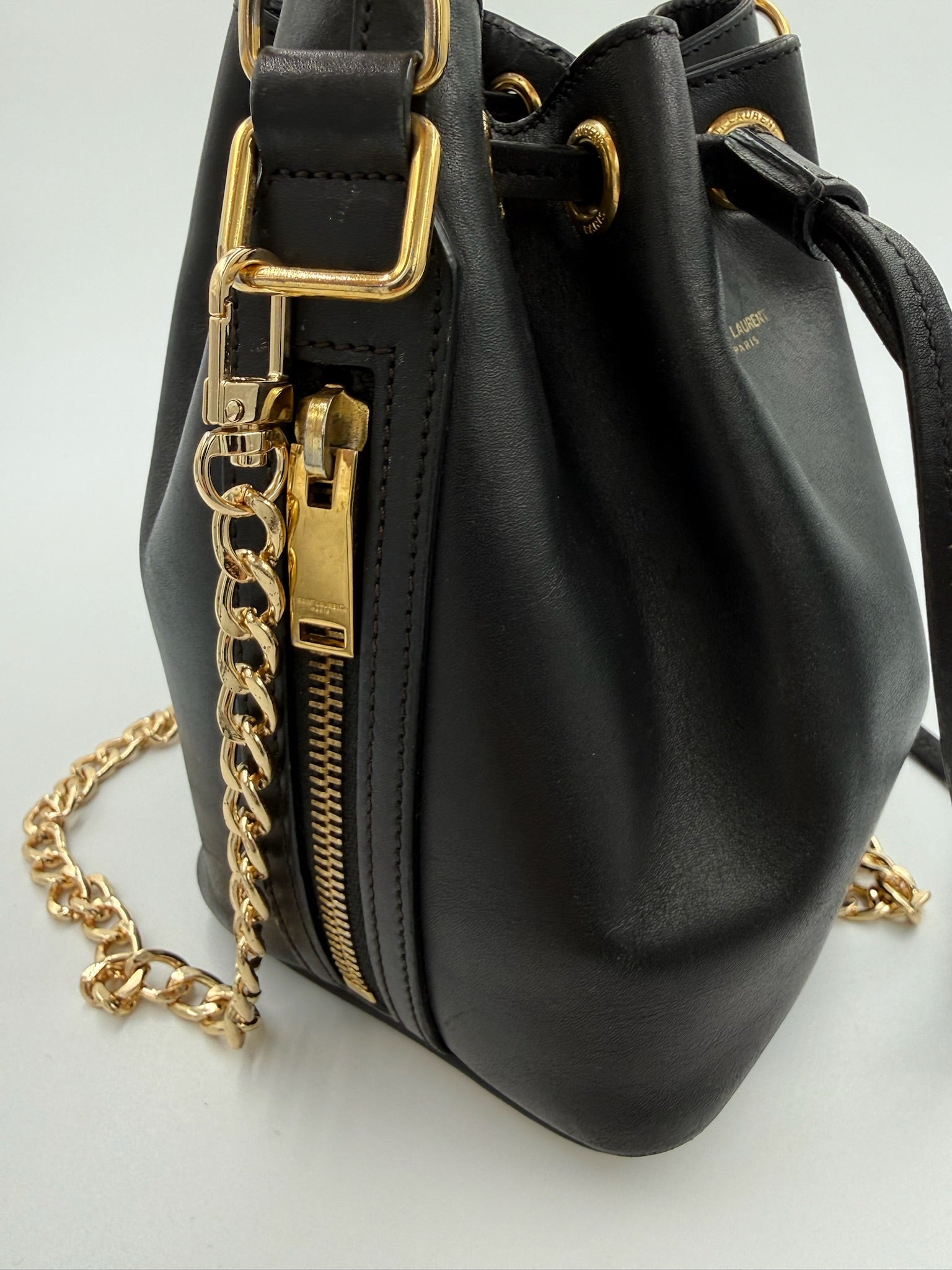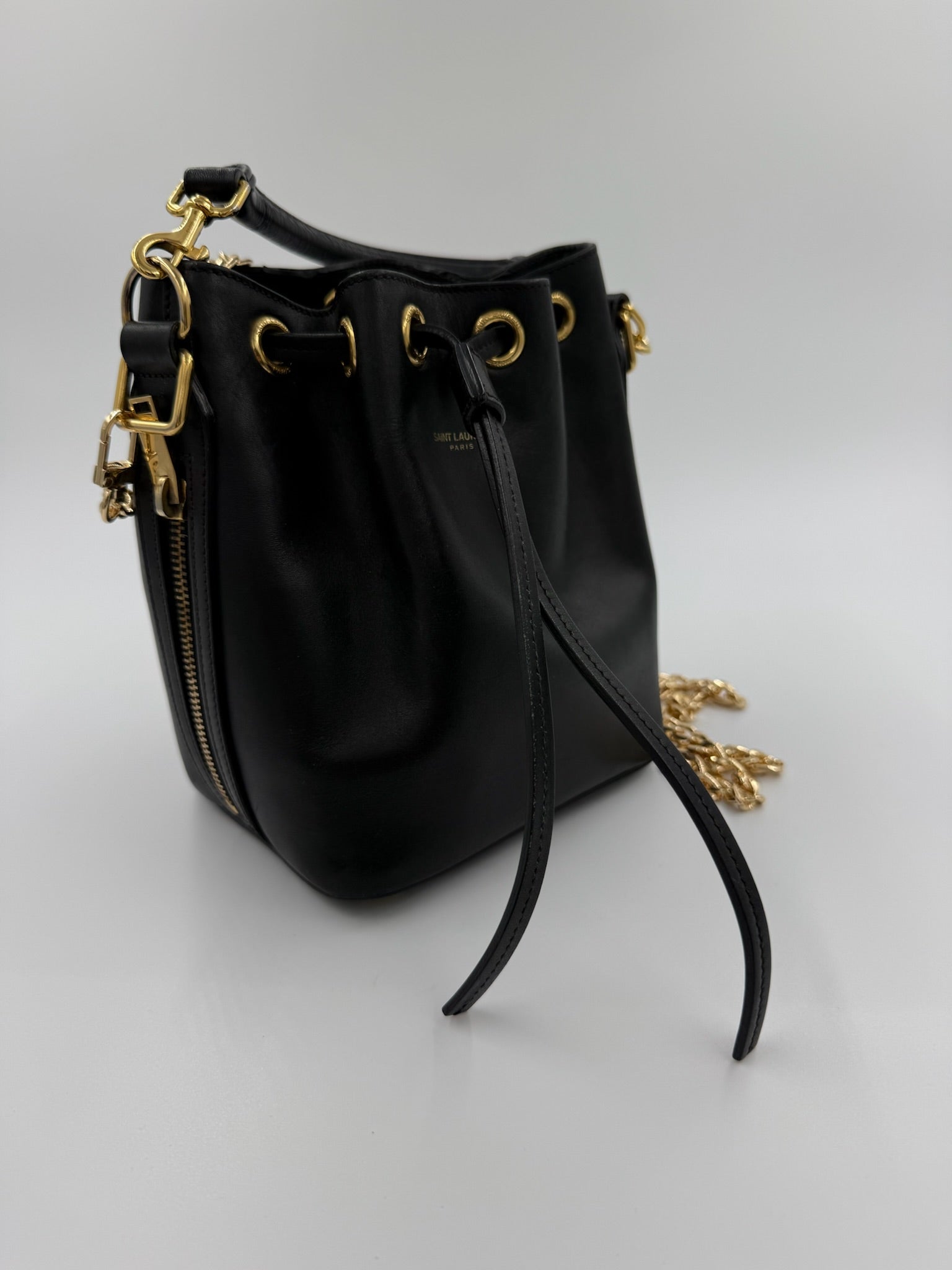 Saint Lauren - YSL mini Bucket bag m. kæde - Sort - Secondhand