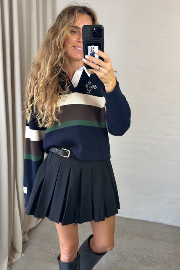 Denne højtaljede minisilhuet fra Sea New York kombinerer klassisk plissering med moderne detaljer. Yderstoffet består af 51 % polyester, 44 % uld og 5 % spandex, som giver dig både komfort og holdbarhed.