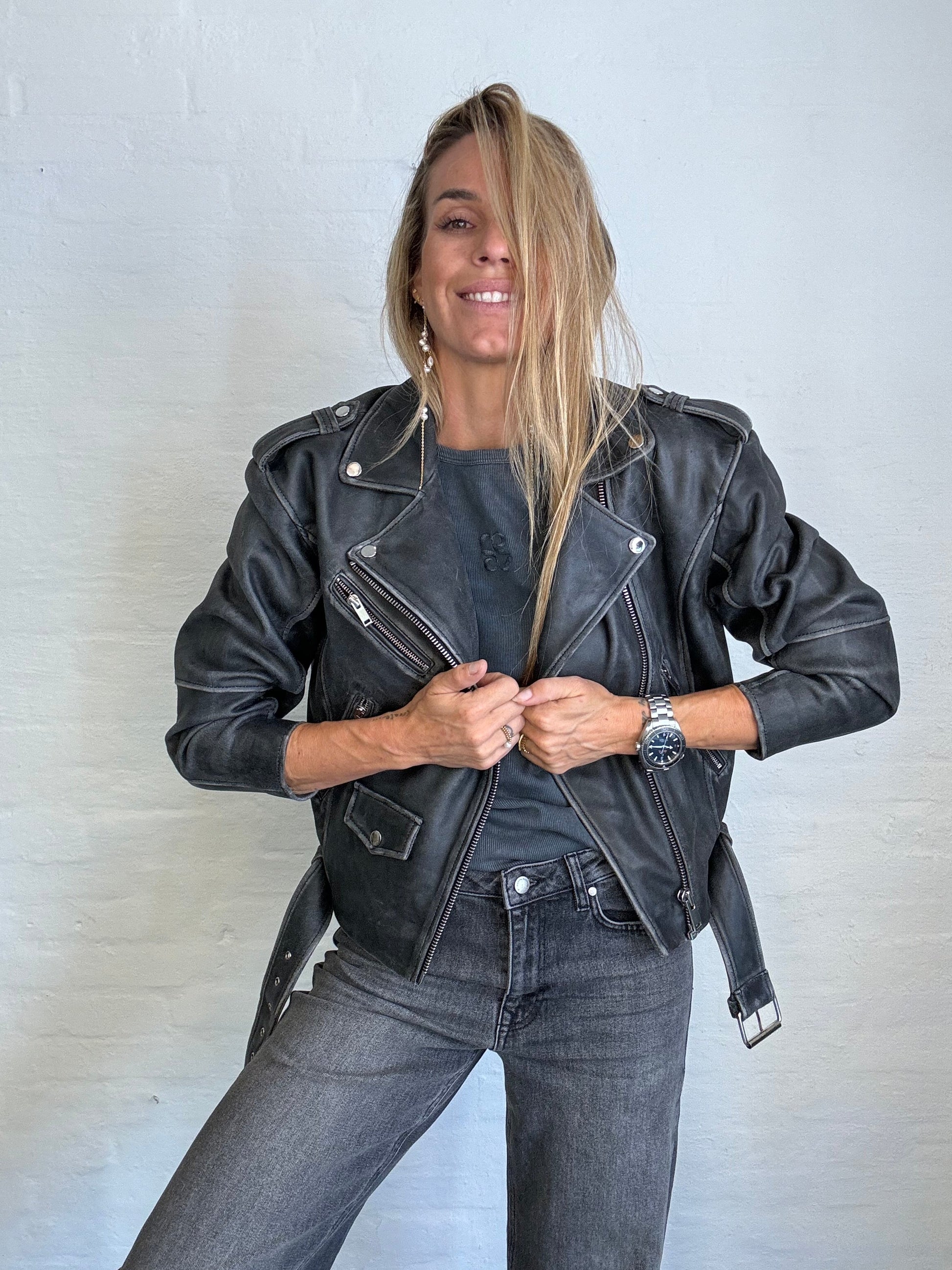 Denne læderjakke er et must-have for den modebevidste. Med sin rå attitude og klassiske elegance passer den perfekt til både hverdag og aften. Det slidte look giver jakken et unikt udtryk, der oser af coolness.
