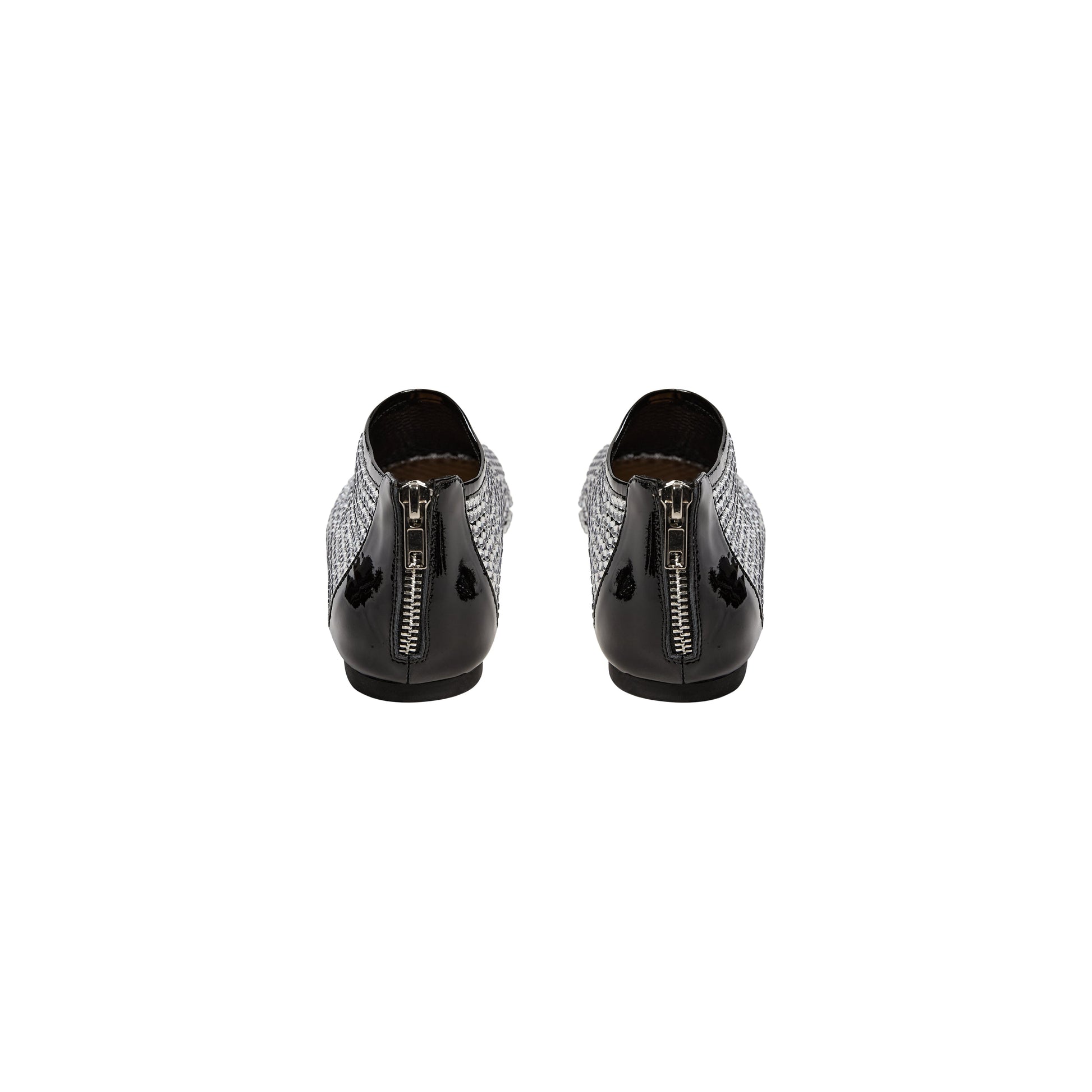 Den runde snude og den flade gummisål sikrer en behagelig pasform, mens den skinnende lakdetalje på hælkappen tilfører et eksklusivt touch. Bagpå finder du en praktisk lynlås, som gør ballerinaen let at hoppe i og ud af, samtidig med at den sidder godt på foden.