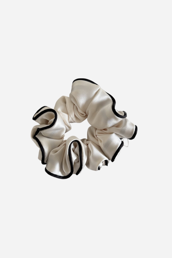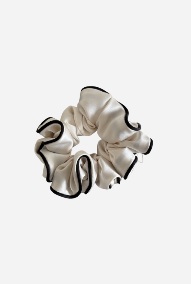 Denne hårelastik fra The Collection kombinerer en hvid base med en sort kant i et tidløst design. Den er fremstillet i 100 % polyester, hvilket giver dig både holdbarhed og fleksibilitet i din daglige hårstyling.