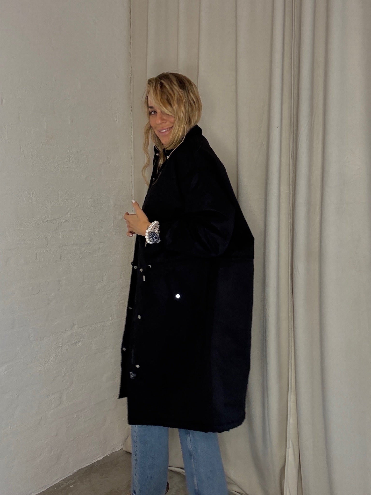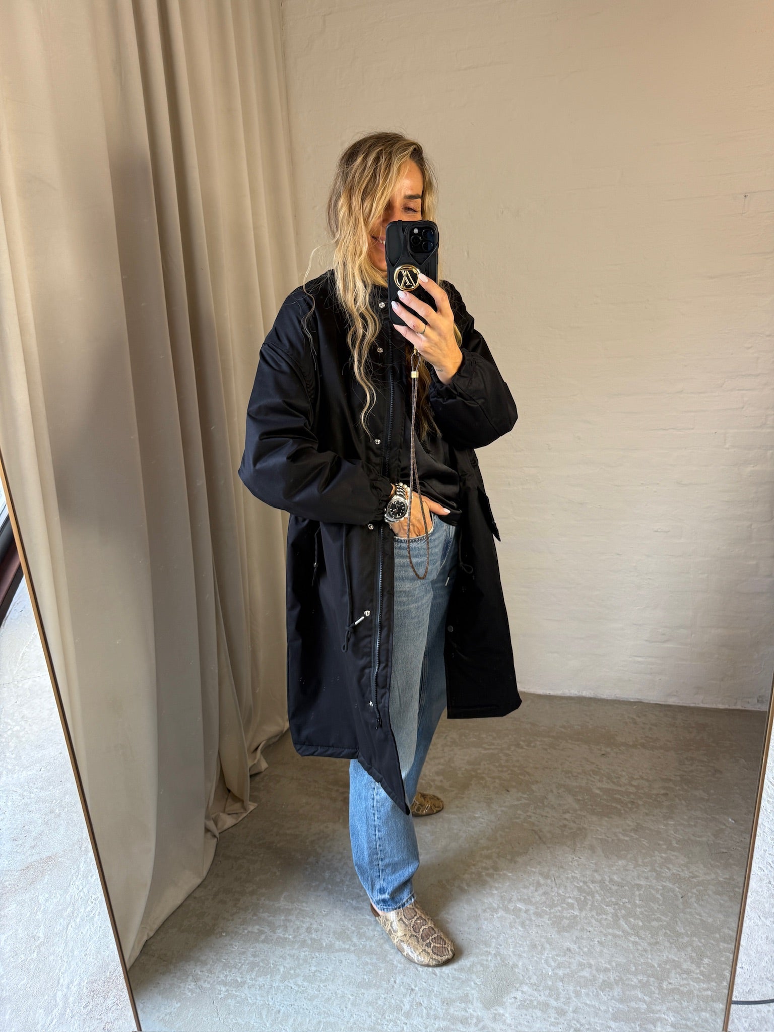 Lang lækker vinterjakke fra The Collection. Jakken lukkes med lynlås og knapper. Jakken har derudover lommer i siderne og så er den tæt ved håndleddene.