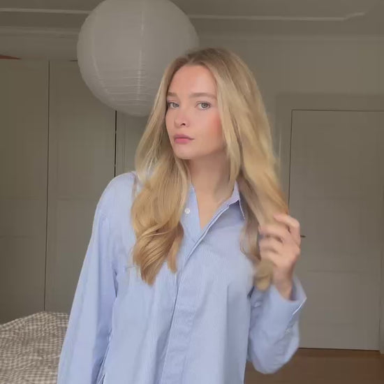 Fin stribet skjorte fra The Collection. Skjorten lukkes med knapper foran samt har den en bindesnørrer i den ene side som er med til at give skjorten et andet look end blot en klassisk skjorte. Der er derudover en halskrave, knapper ved ærmerne og en brystlomme.