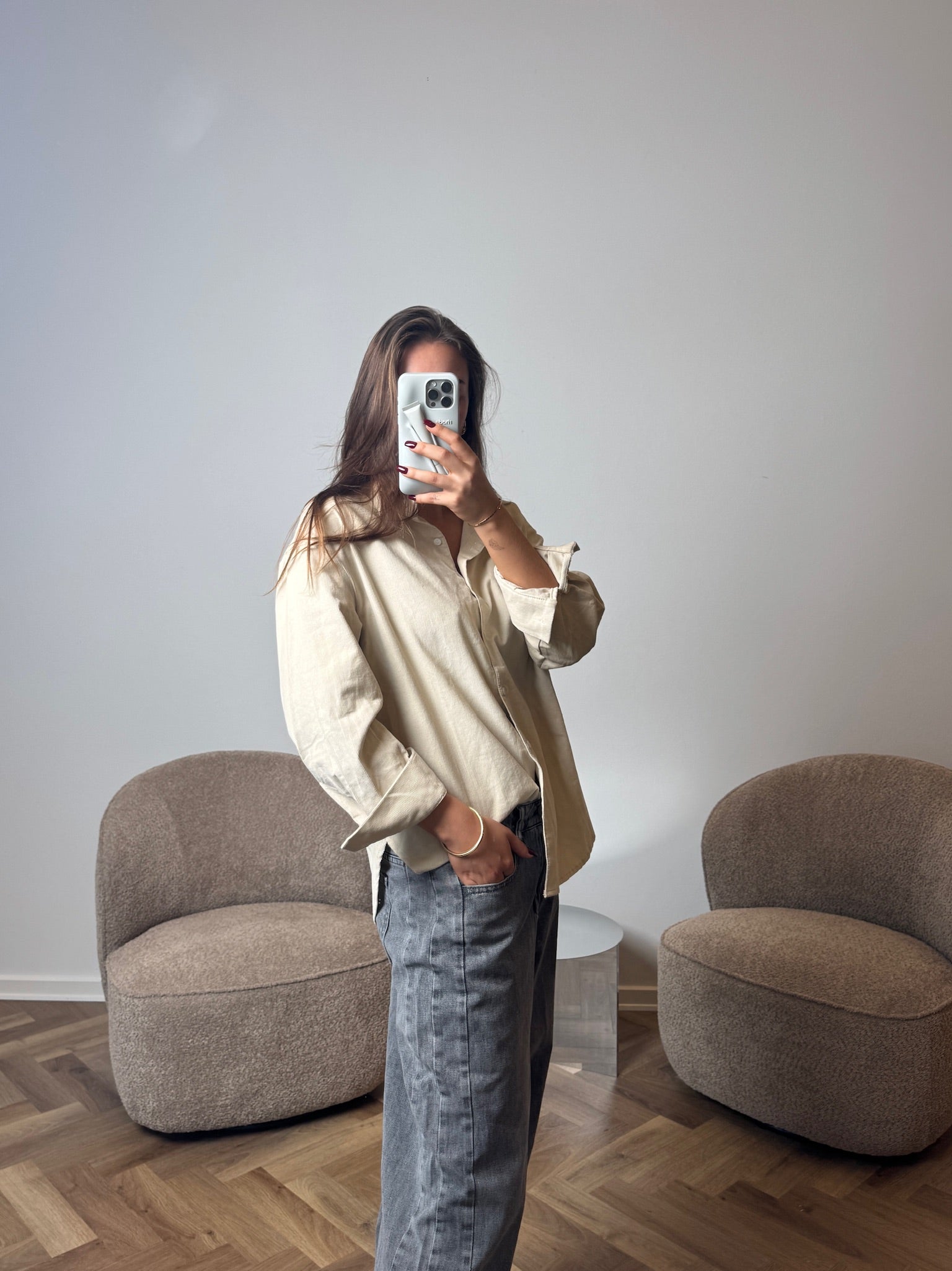 En smuk skjorte, let oversize og en lækker cremet farve.