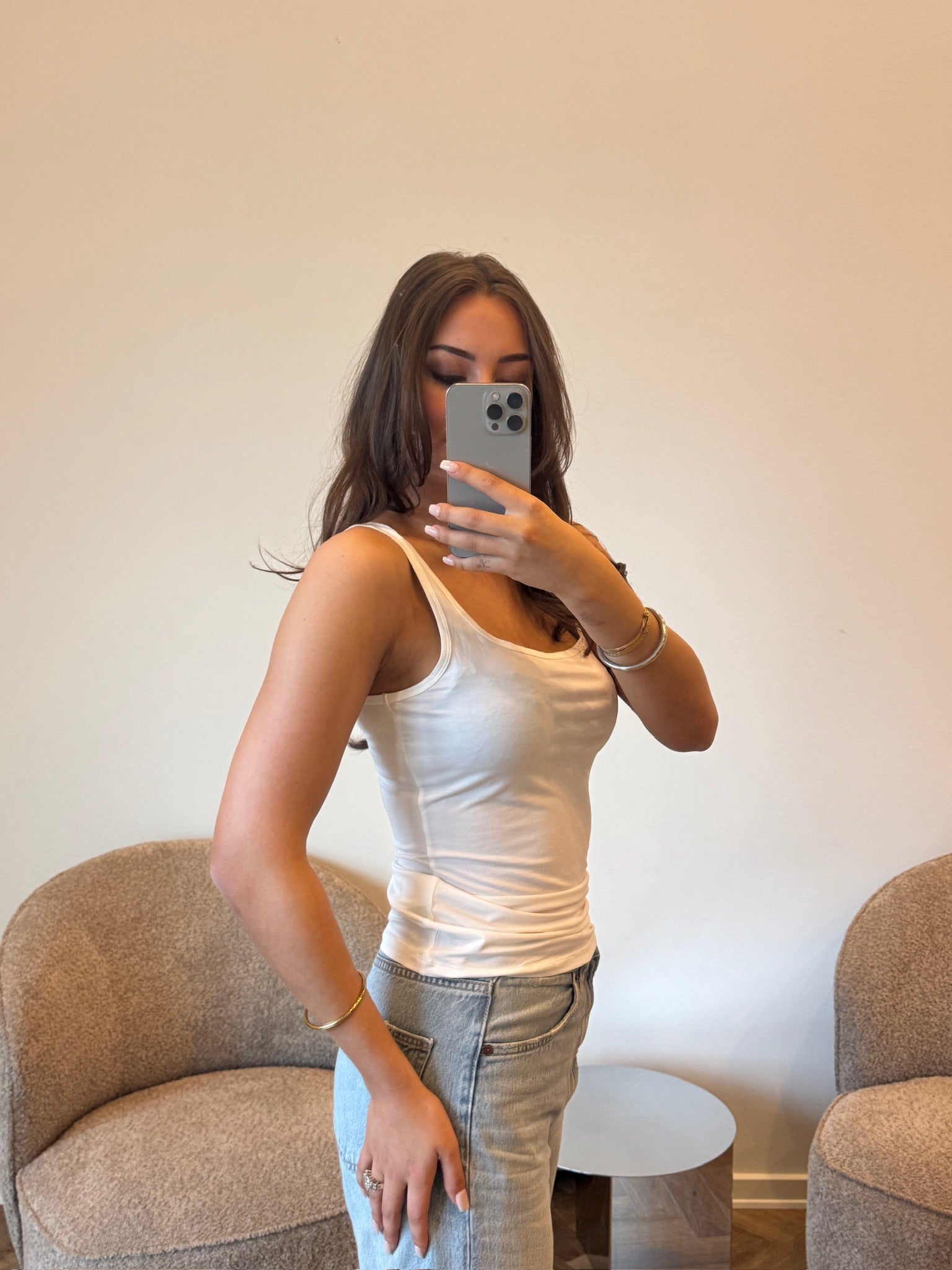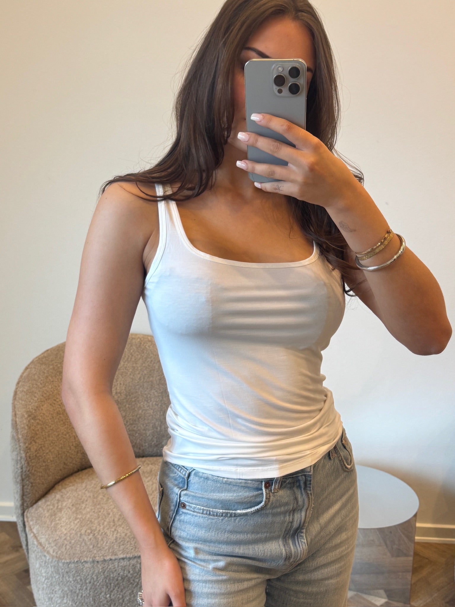 En blød og strækbar top fra The Collection. Toppen er i materiale modal, som gør at den er ekstra lækker i kvaliteten. Toppen har en rund halsudskæring og tynde stropper. Samt er den tætsiddende.
