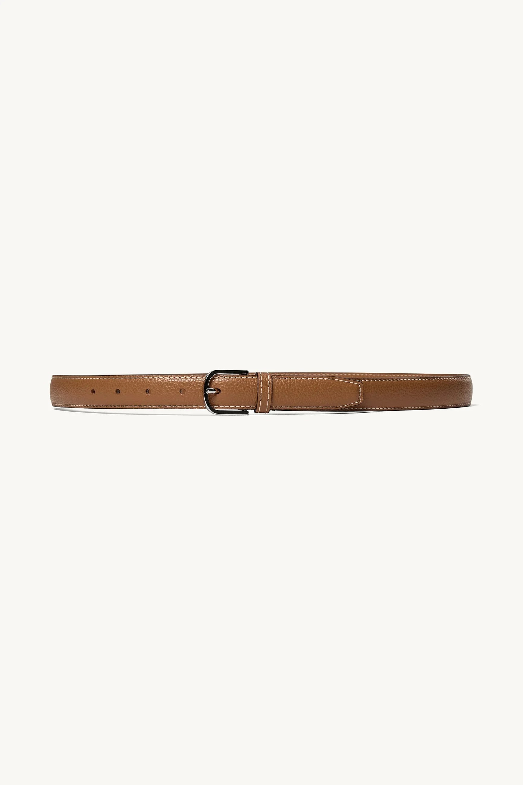 Kaja Belt fra The Garment er et smalt bælte i cognacfarvet læder, der giver outfittet et roligt og raffineret se-præg. Det enkle spænde i mørk metal tilfører en diskret kontrast. Bæltet måler 85 cm og passer perfekt, når du vil markere silhouetten eller tilføje et stilrent touch til dit look.