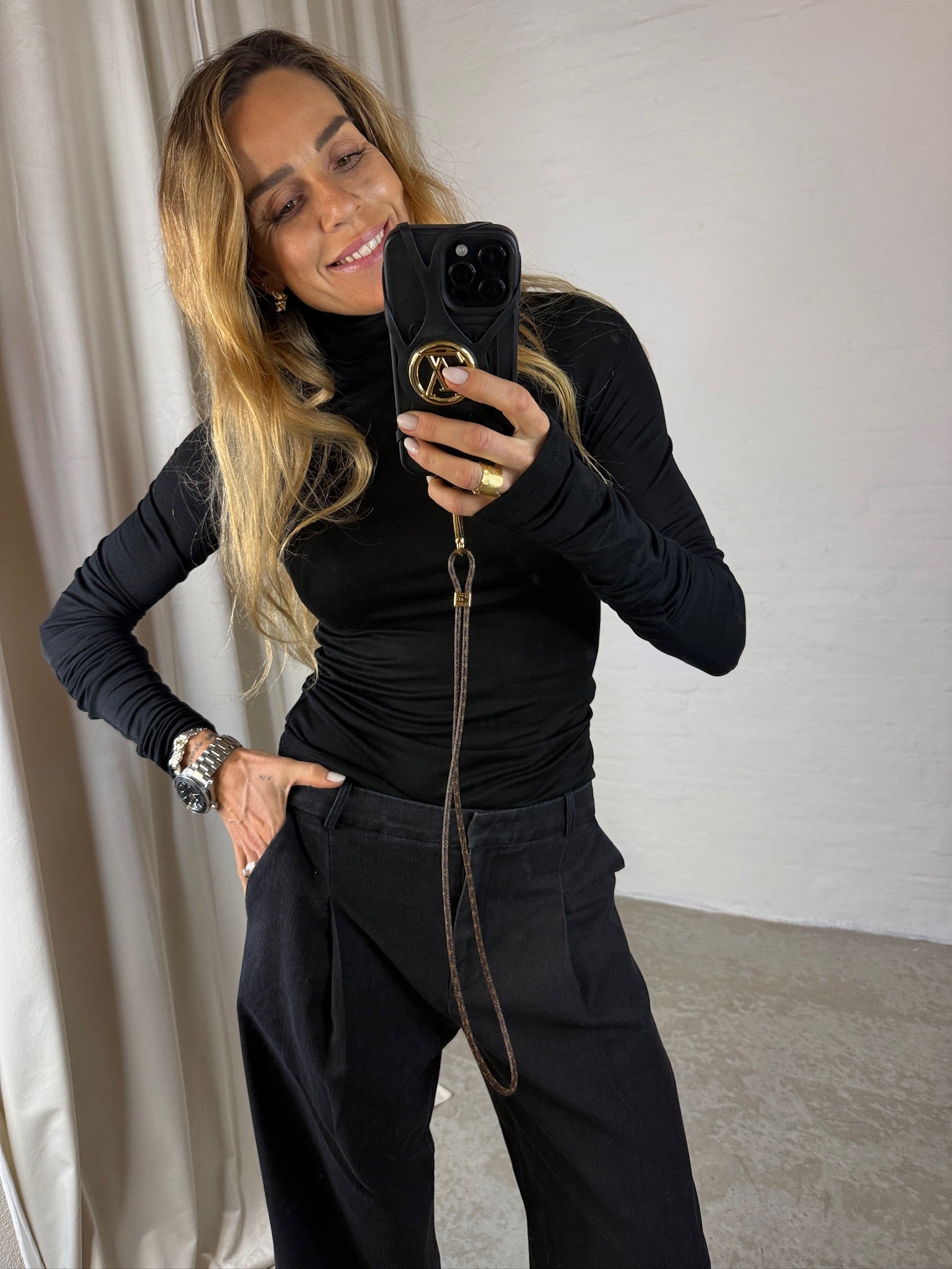 Det tætsiddende snit fremhæver din silhuet, mens de karakteristiske lange ærmer tilfører et moderne twist. Rullekraven giver både varme og stil, når du har brug for et lag, der kan bruges både til hverdag og til særlige lejligheder.